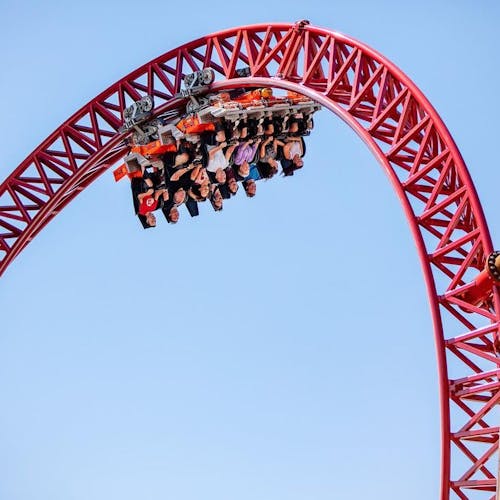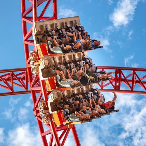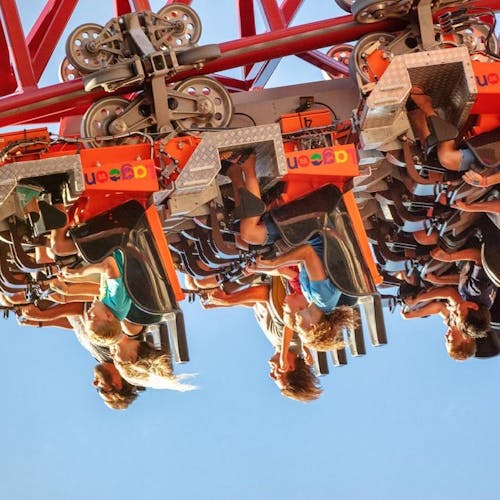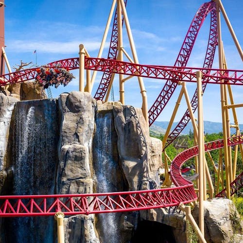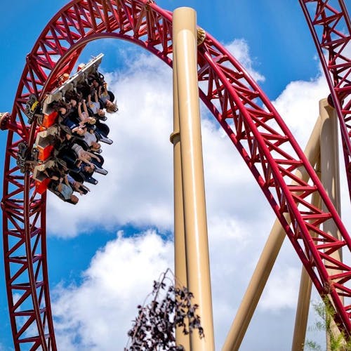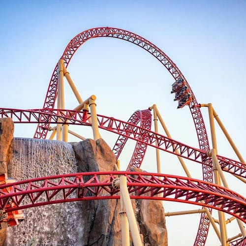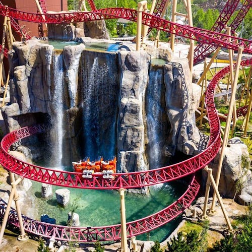 Além da inclinação e da descida de tirar o fôlego, a montanha-russa ainda tem um circuito invertido de quase 43 metros de altura que deixa os corajosos de cabeça pra baixo, além de fazer curvas sinuosas por um cenário aquático. A velocidade chega a até 113 km/h, ao longo de 834 metros através de três inversões‼️