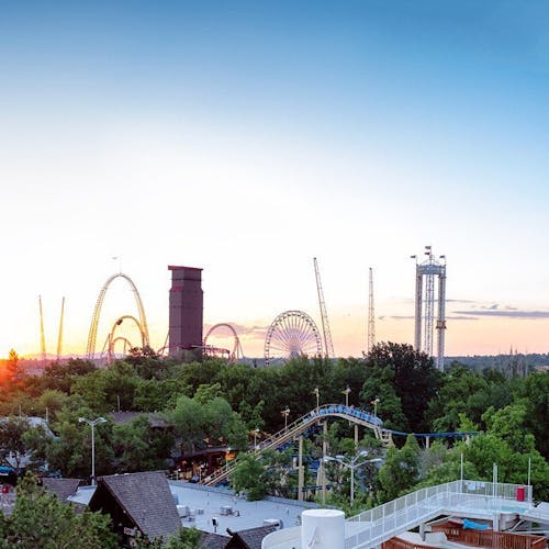 Dividido em cinco áreas principais, a maioria dos passeios tem uma variedade de jogos interativos e restaurantes, um parque aquático que está incluído no preço normal da entrada, uma área para crianças menores e a zona com passeios mais radicais que têm um custo extra em alguns. O parque também oferece um estacionamento para trailers com serviço completo, um acampamento e uma trilha de caminhada sombreada fora do parque que permanece aberta o ano todo.