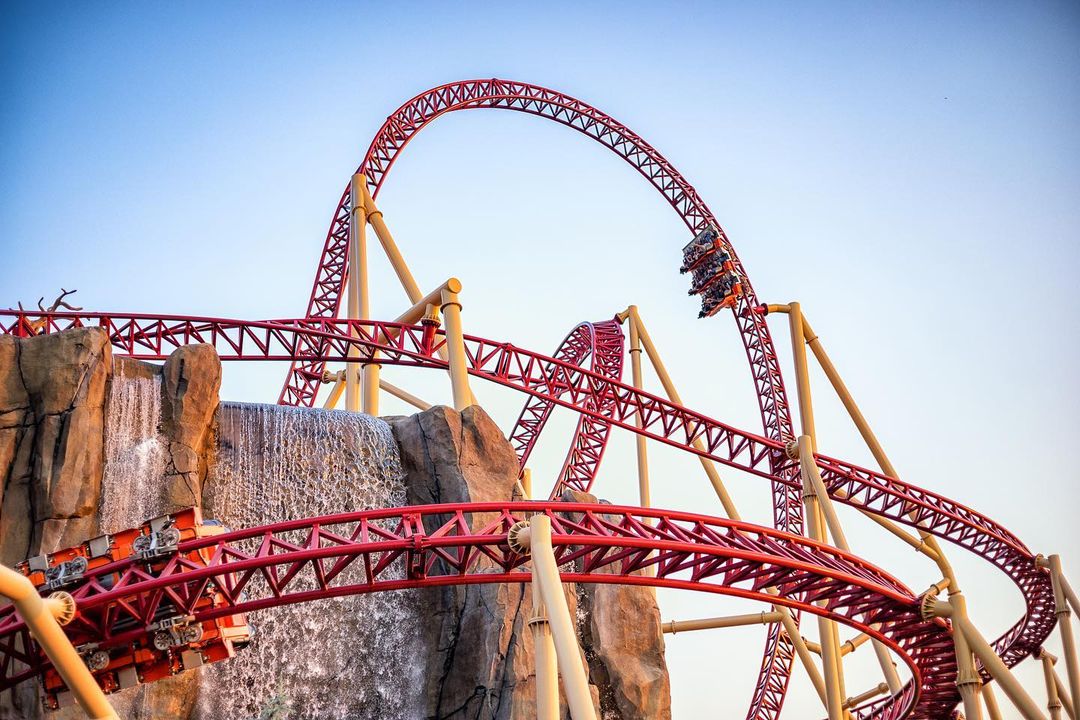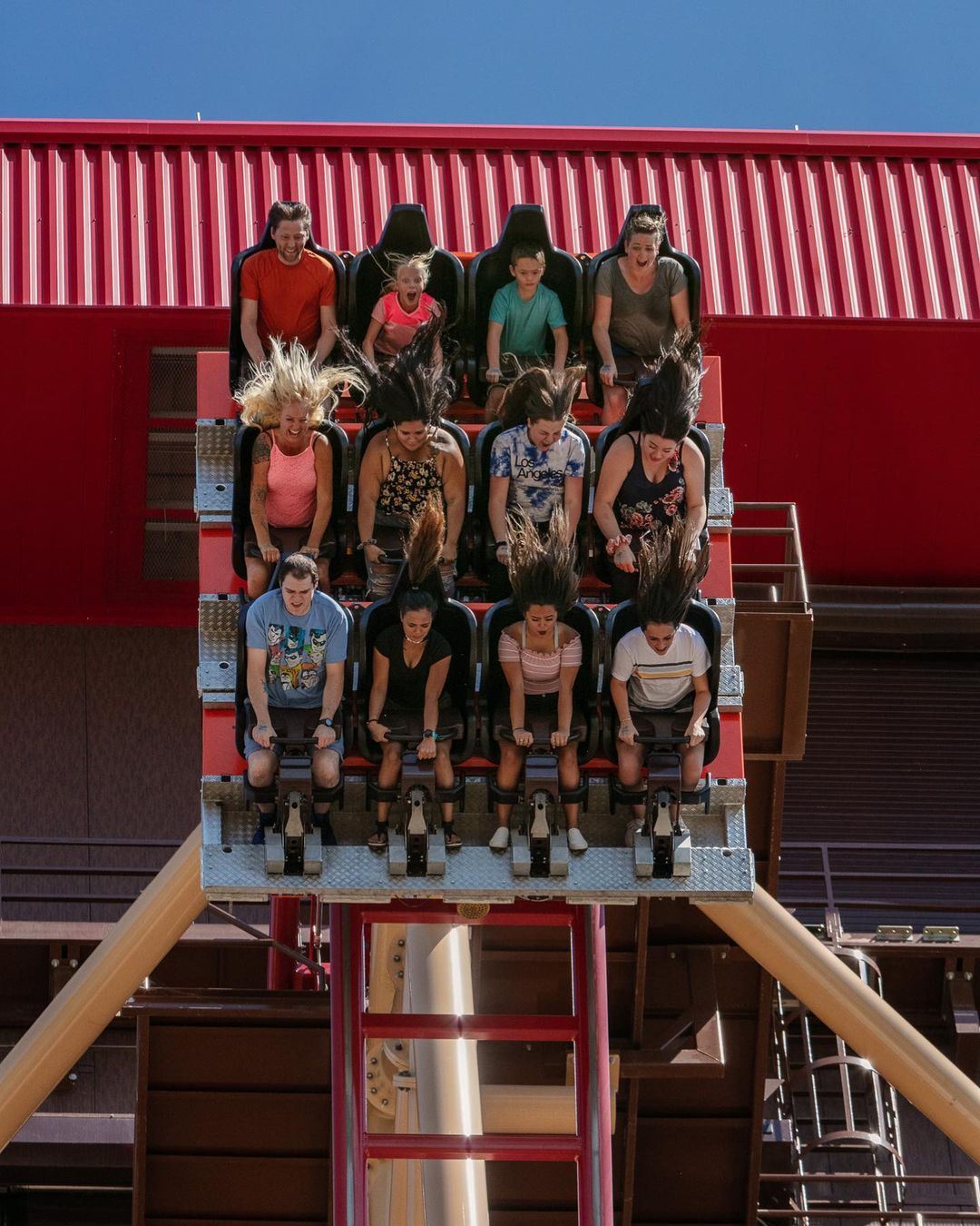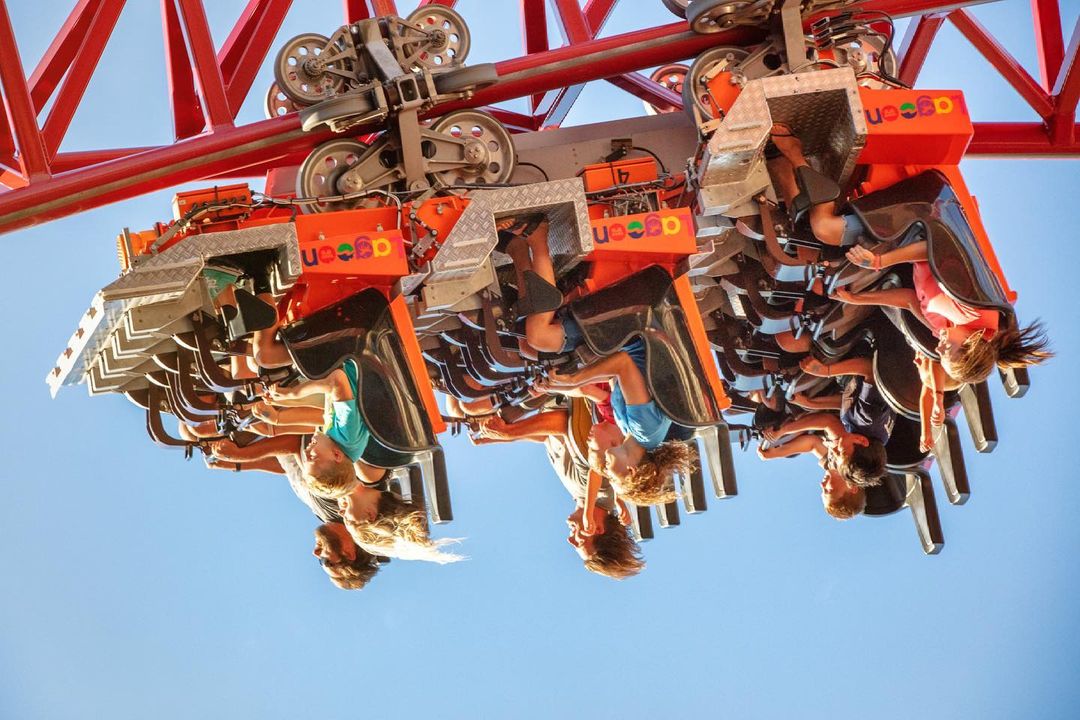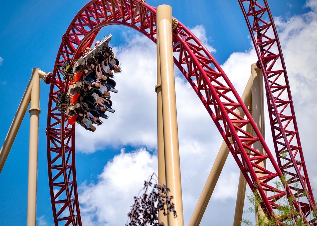 Além da inclinação e da descida de tirar o fôlego, a montanha-russa ainda tem um circuito invertido de quase 43 metros de altura que deixa os corajosos de cabeça pra baixo, além de fazer curvas sinuosas por um cenário aquático. A velocidade chega a até 113 km/h, ao longo de 834 metros através de três inversões‼️