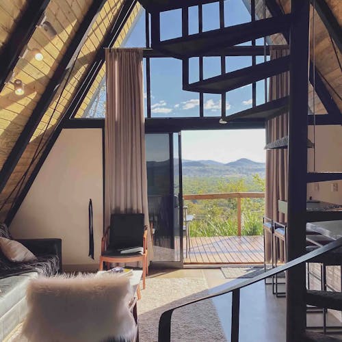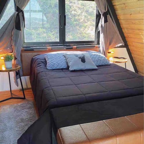 Com design no interior bonito, linda decoração e mais minimalista, a cabana trás uma experiência diferente mesmo para aqueles acostumados a viajar e para os que curtem experiências menos radicais e também pra quem gosta, afinal um momento relax é sempre bom! E nem comentamos ainda de todo espaço verde que cerca o lugar...