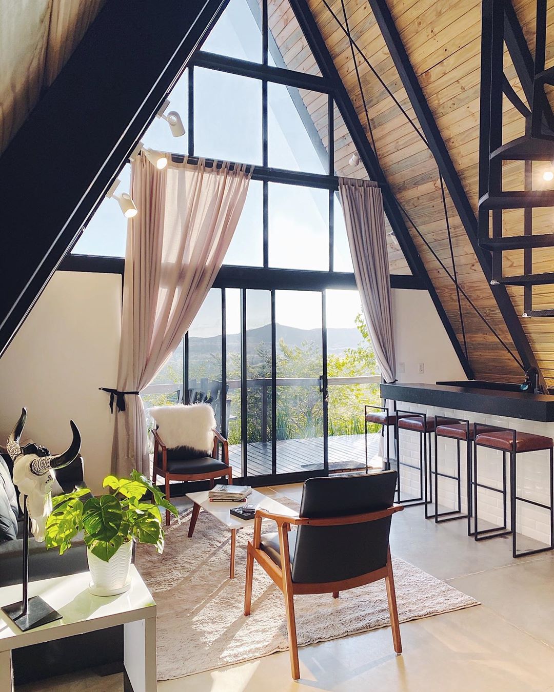 Com design no interior bonito, linda decoração e mais minimalista, a cabana trás uma experiência diferente mesmo para aqueles acostumados a viajar e para os que curtem experiências menos radicais e também pra quem gosta, afinal um momento relax é sempre bom! E nem comentamos ainda de todo espaço verde que cerca o lugar...