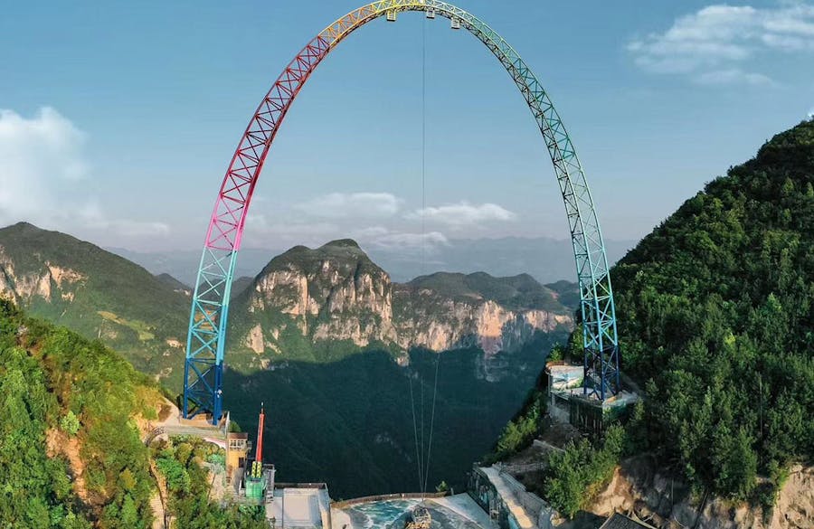 Localizado no parque Yunyang Longgang Scenic Spot na China, após meses de testes essa é a mais nova atração radical do lugar, inaugurado em junho de 2020, é o maior balanço de penhasco do mundo! A faixa que suspende o balanço pode chegar a 91 metros e é um desafio de tirar o fôlego para os turistas. Além da altura é a atração com maior velocidade chegando a 130km/h e maior alcance em suspensão no ar com o balanço atingindo 90°.