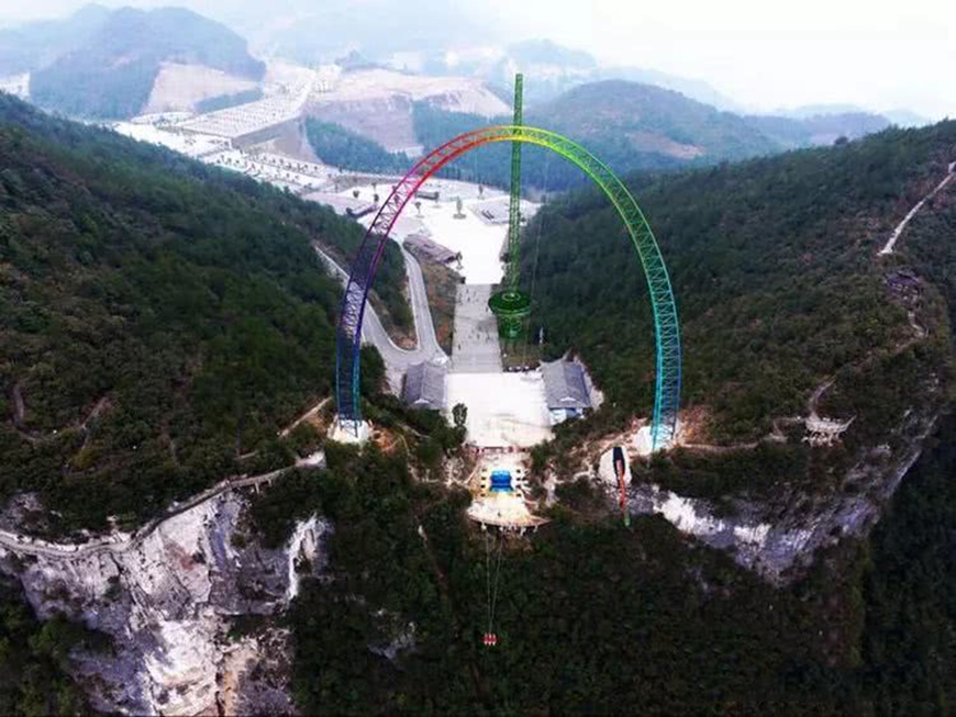 Localizado no parque Yunyang Longgang Scenic Spot na China, após meses de testes essa é a mais nova atração radical do lugar, inaugurado em junho de 2020, é o maior balanço de penhasco do mundo! A faixa que suspende o balanço pode chegar a 91 metros e é um desafio de tirar o fôlego para os turistas. Além da altura é a atração com maior velocidade chegando a 130km/h e maior alcance em suspensão no ar com o balanço atingindo 90°.