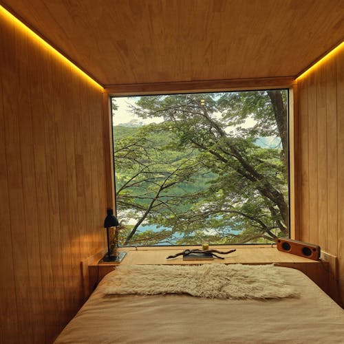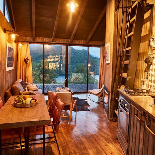 Cercando o local onde as cabanas e os espaços estão localizados, há o Lago Lonconao, que margeia boa parte do MAPU. Há acesso direto ao lago e toda sua natureza selvagem, as cabanas têm vista quase que 360 da região e algumas têm o quarto de frente para o amanhecer do lago.