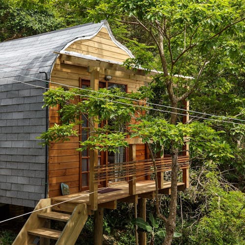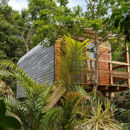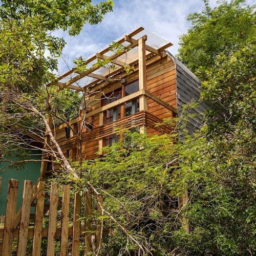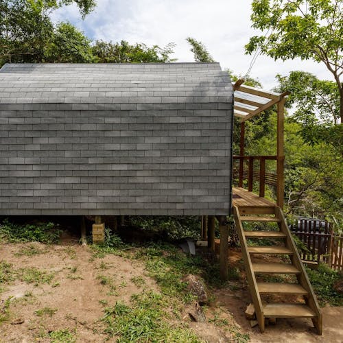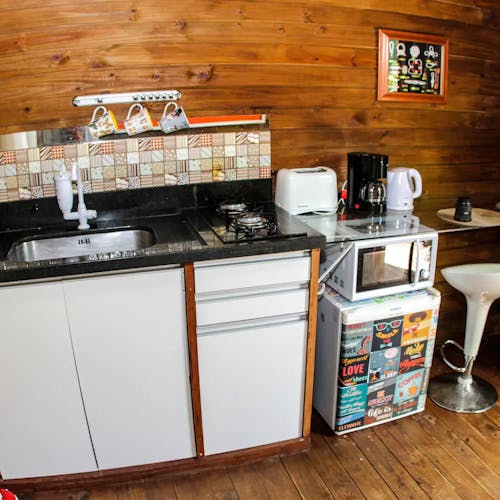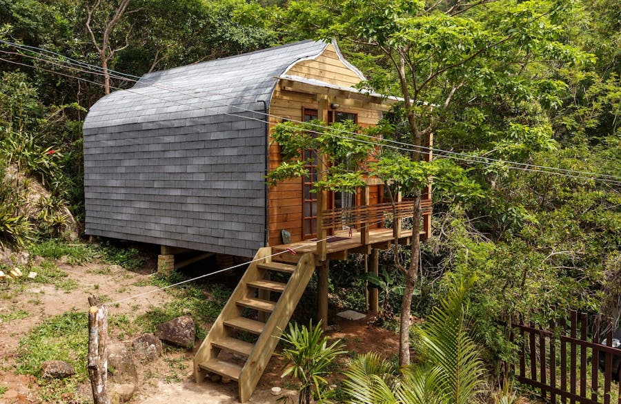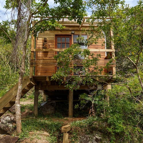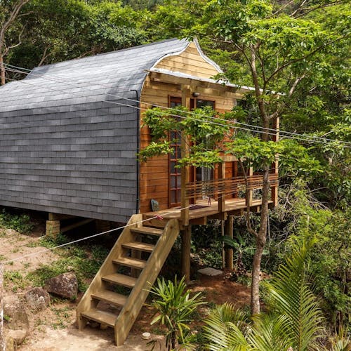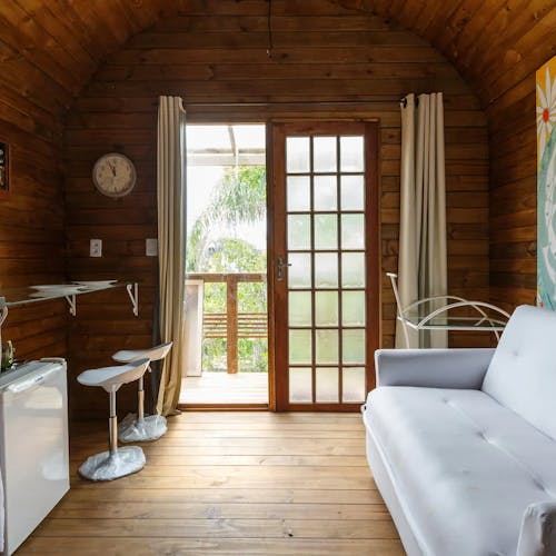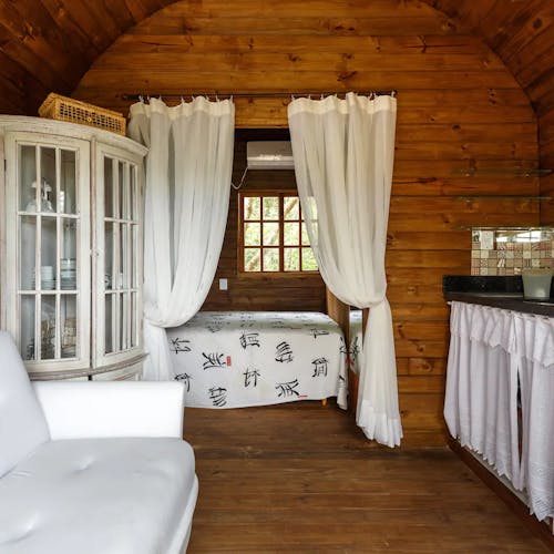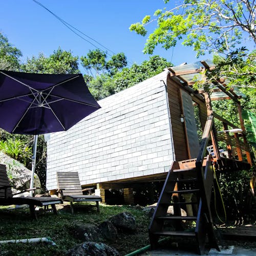 Essa de madeira encontramos em um morro em Florianópolis, pra quem curte uma aventura diferente. As Microcasas como são chamadas por aqui, tem uma dimensão de 8 a 40 metros quadrados e isso somado ao estilo cool e tudo equipado com apenas o essencial, é o que as torna especiais. Aqui são no total 18 metros quadrados, sendo 3 de largura e 6 de comprimento - hospeda no máximo 2 pessoas.