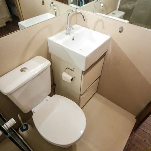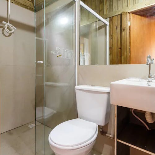 A casa compartilha jardim com outra casa principal do local, porém o espaço interno da Tiny é todo de quem aluga, sem intervenções.