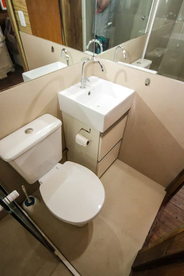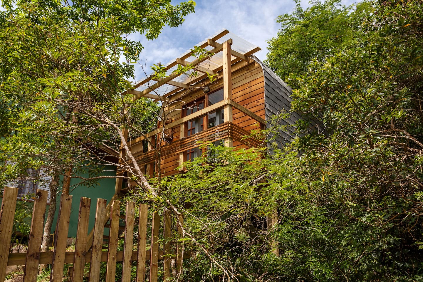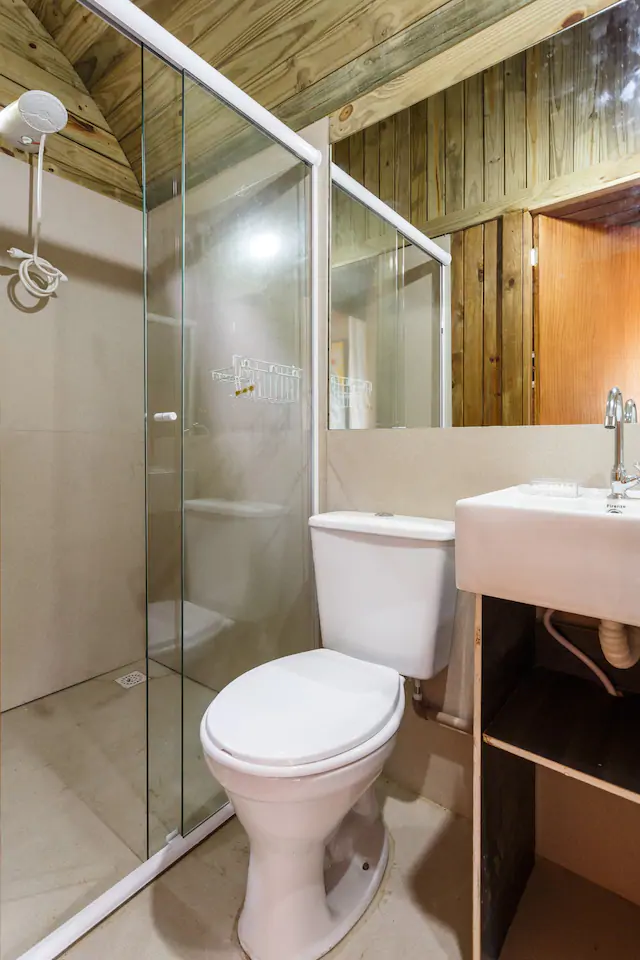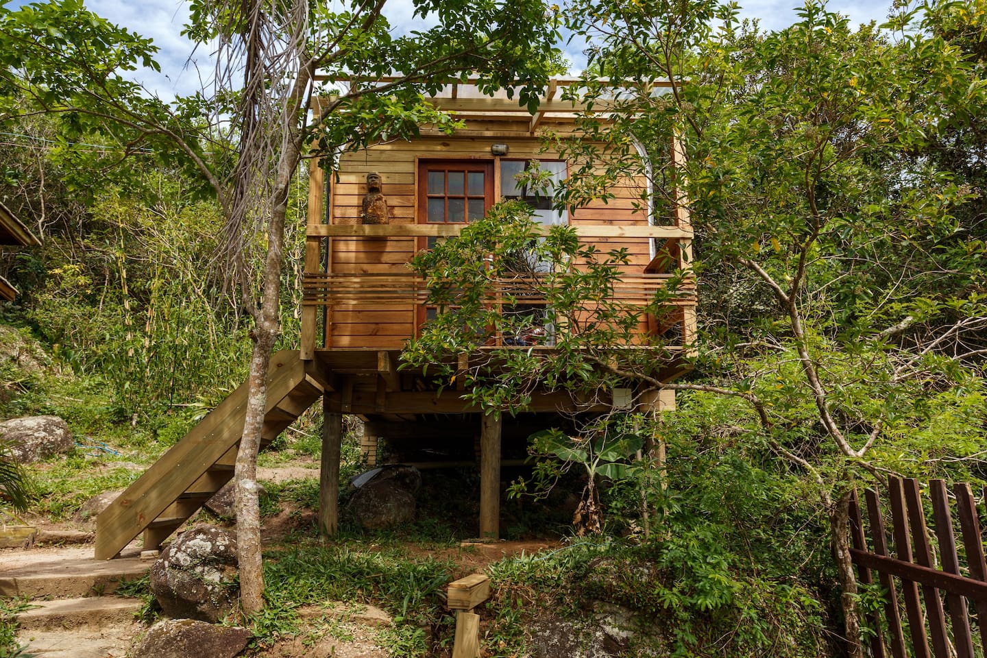 Essa de madeira encontramos em um morro em Florianópolis, pra quem curte uma aventura diferente. As Microcasas como são chamadas por aqui, tem uma dimensão de 8 a 40 metros quadrados e isso somado ao estilo cool e tudo equipado com apenas o essencial, é o que as torna especiais. Aqui são no total 18 metros quadrados, sendo 3 de largura e 6 de comprimento - hospeda no máximo 2 pessoas.