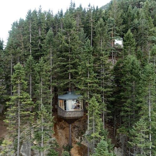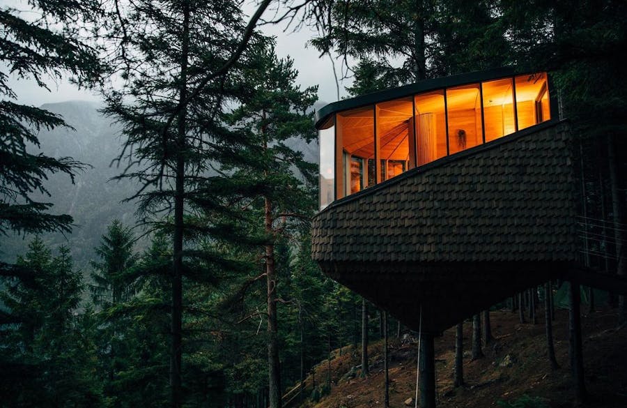 A minimalista e linda casa na árvore no meio da floresta com uma vista de tirar o fôlego