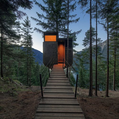 Para completar a experiência, o estacionamento fica a uma caminhada entre 15 a 20 minutos da casa na árvore por dentro da floresta (porém por caminhos sem impactar a natureza), escadas de madeira e aço estão disponíveis para as partes mais íngremes da caminhada até a casa. Degraus de pedra feitos à mão foram movidos para facilitar o caminho.
