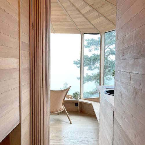 Woodnest, o local que abriga a casa na árvore, foi criado por um casal com uma filha pequena, em uma pequena ilha na Noruega. O pai é eletricista de profissão, e um faz-tudo completo. Ele contribuiu significativamente para a construção do local, desde as escadas, até o interior da cabana e todo trabalho elétrico. Já a mãe é a principal comunicadora com os hóspedes e trabalha no gerenciamento da Woodnest, adora design e cuida para que os detalhes estejam sempre impecáveis, já que essas casas na árvore se tratam de um modelo embora minimalista e pequeno, cheio de conforto e qualidade.