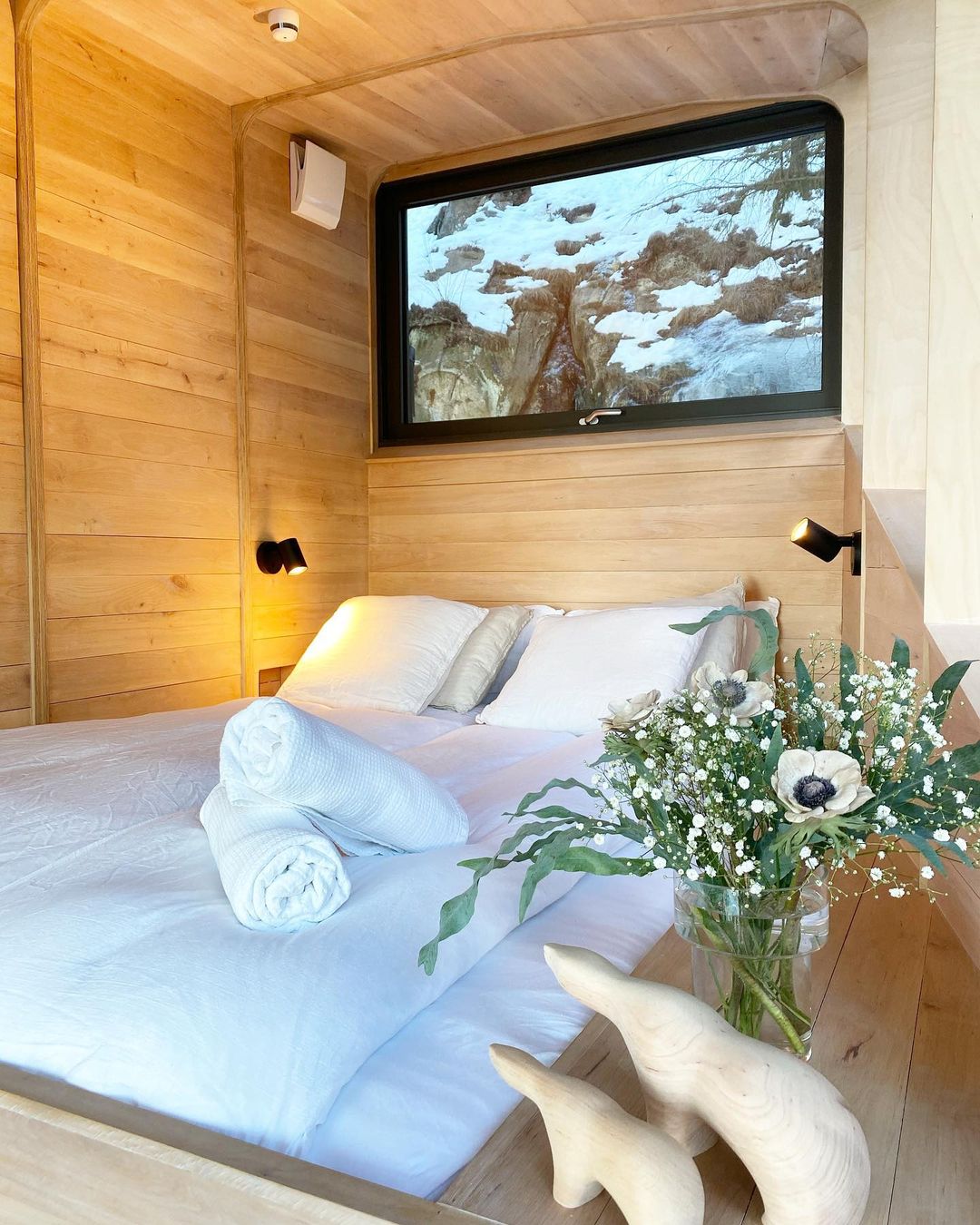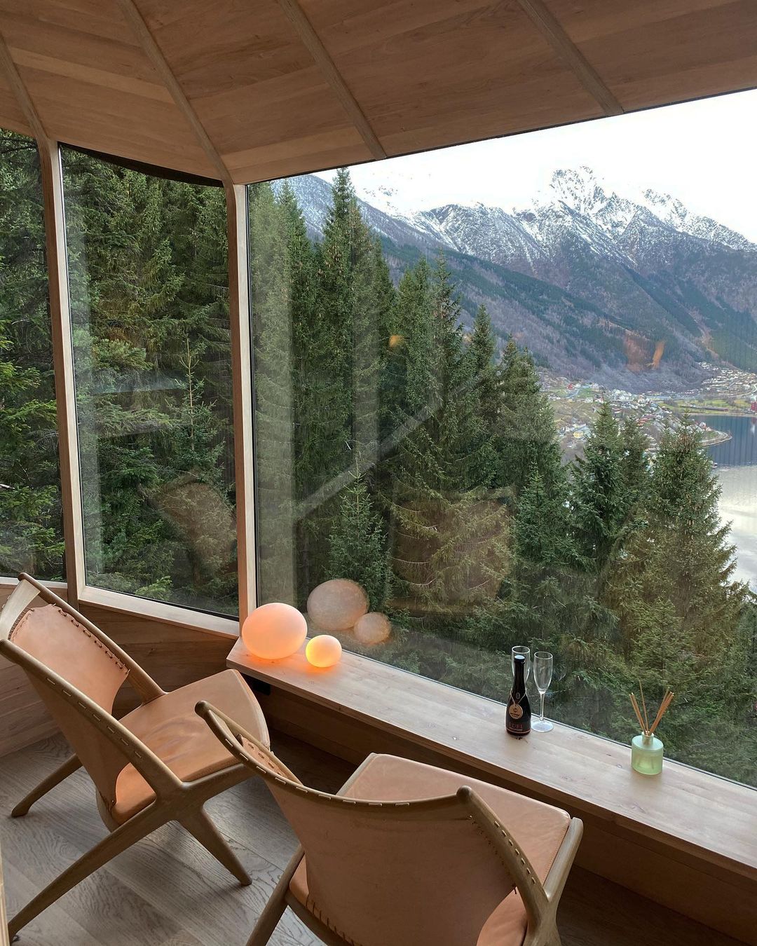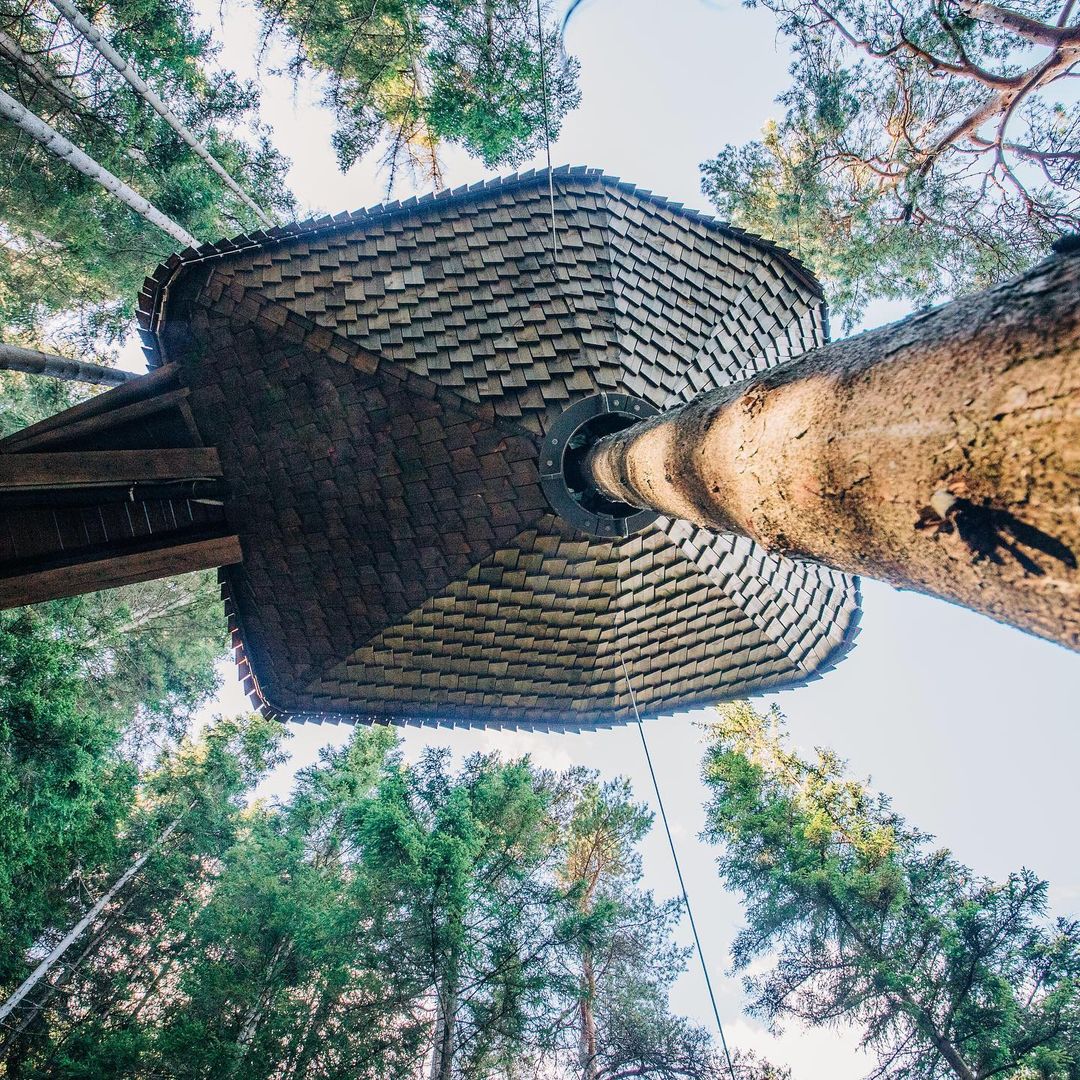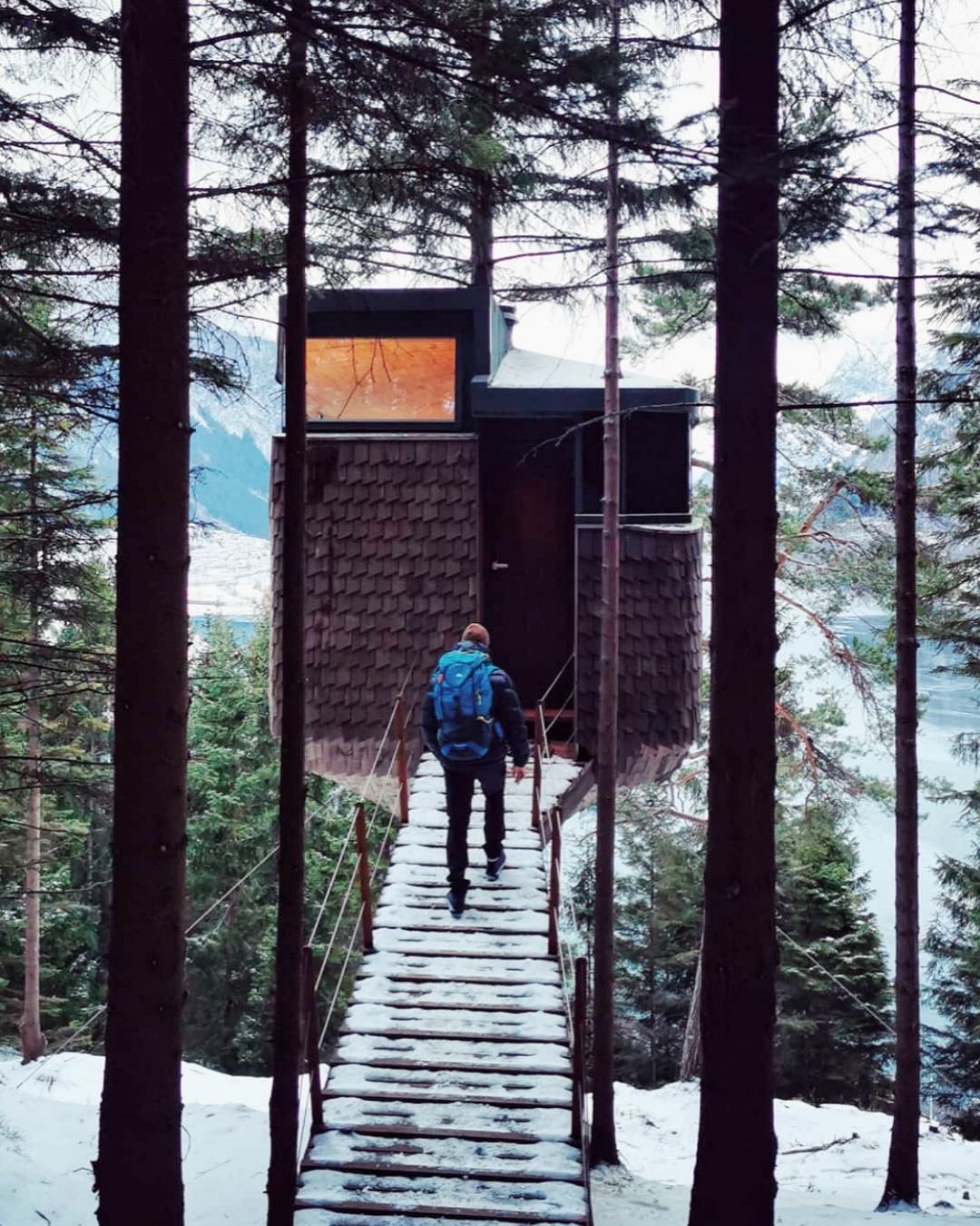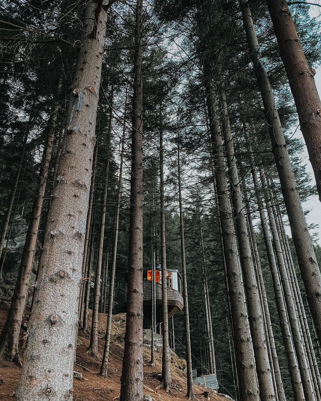 Cada casa fica a 10 metros de altura em altos pinheiros, com estrutura forte e texturas que deixam qualquer arquiteto de boca aberta. O interior é composto de madeira refinada e toda a casa é cercada de grandes janelas de vidro, o que transforma a experiência em algo espetacular já que as cabanas tem uma vista incrível para o belíssimo lago e para os bosques ao entorno.