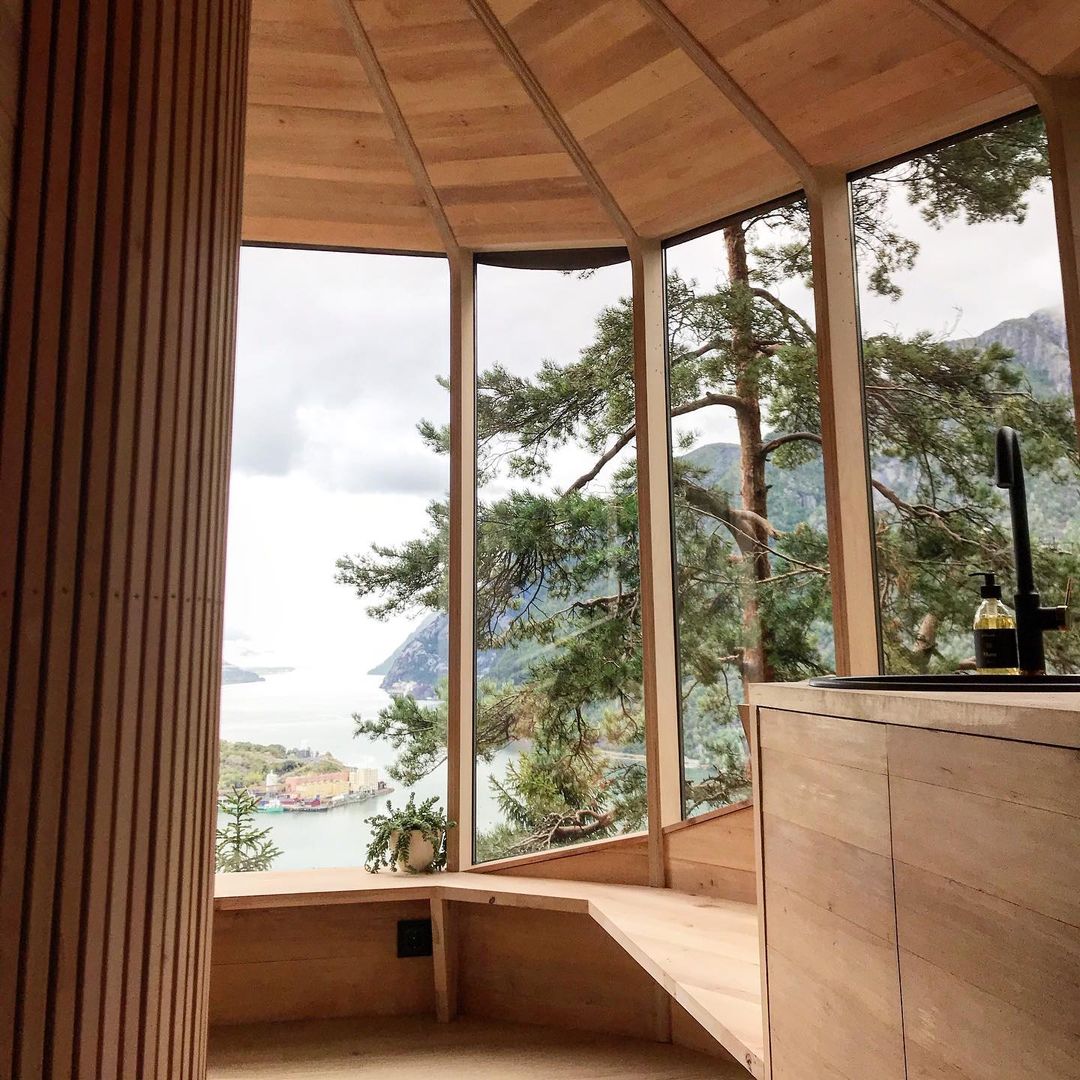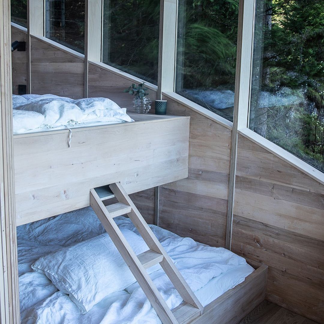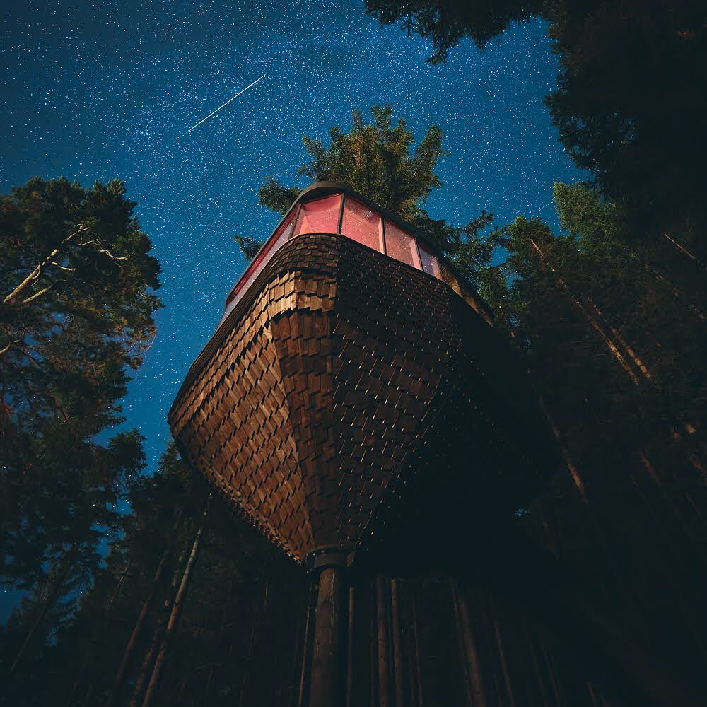 Woodnest, o local que abriga a casa na árvore, foi criado por um casal com uma filha pequena, em uma pequena ilha na Noruega. O pai é eletricista de profissão, e um faz-tudo completo. Ele contribuiu significativamente para a construção do local, desde as escadas, até o interior da cabana e todo trabalho elétrico. Já a mãe é a principal comunicadora com os hóspedes e trabalha no gerenciamento da Woodnest, adora design e cuida para que os detalhes estejam sempre impecáveis, já que essas casas na árvore se tratam de um modelo embora minimalista e pequeno, cheio de conforto e qualidade.