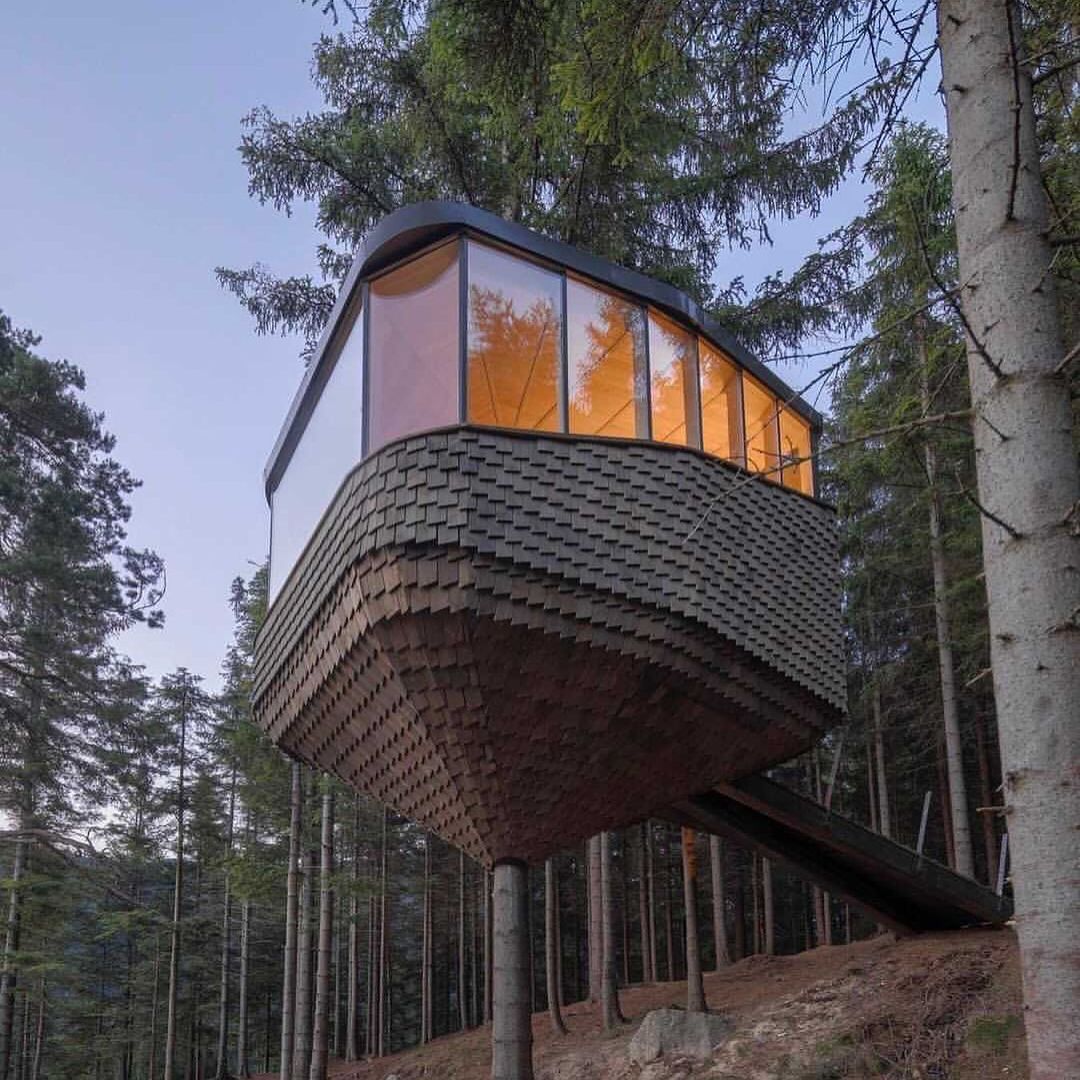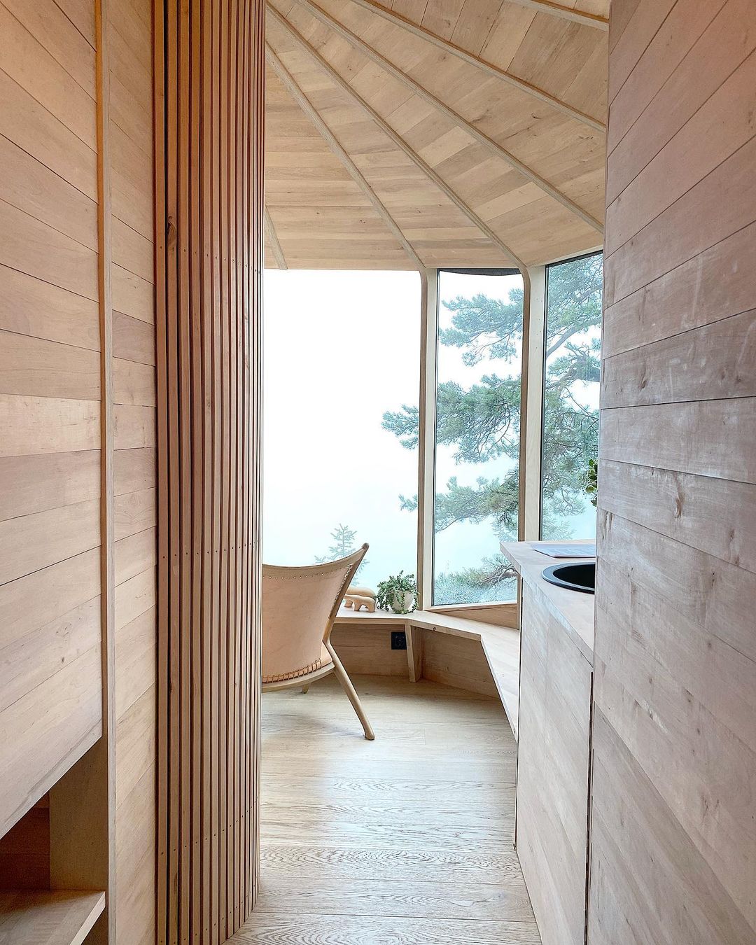 A minimalista e linda casa na árvore no meio da floresta com uma vista de tirar o fôlego