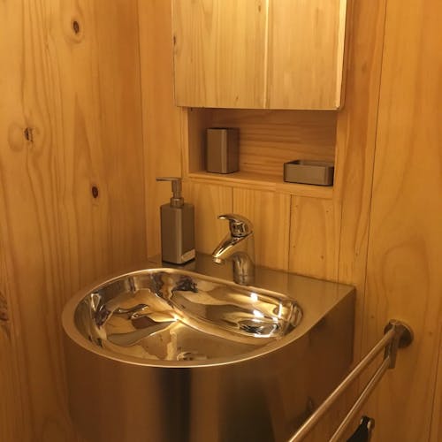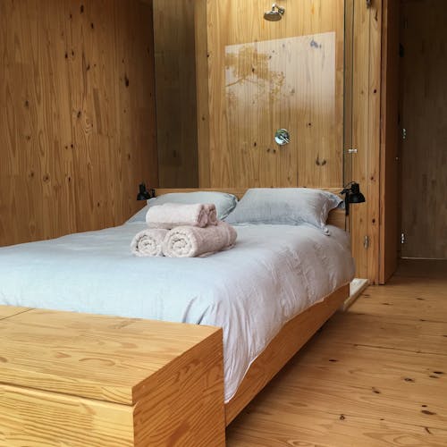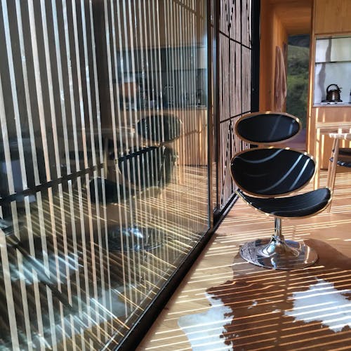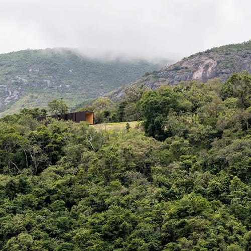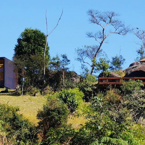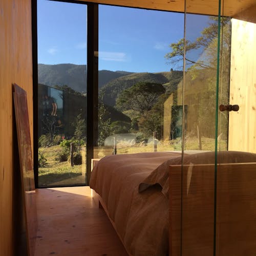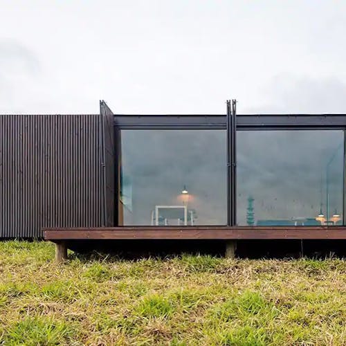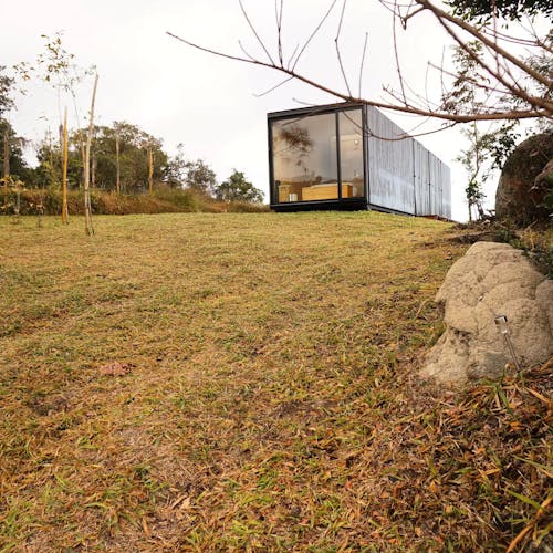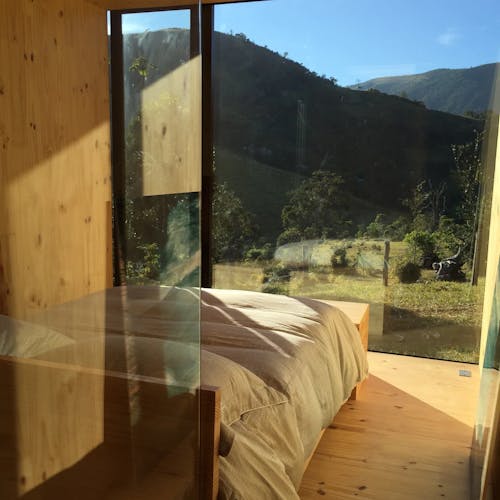 MINIMOD como é chamada essa construção, é um tipo de cabana ecológica. Não tem sinal de telefone, o local é totalmente isolado e remoto. A energia é solar.