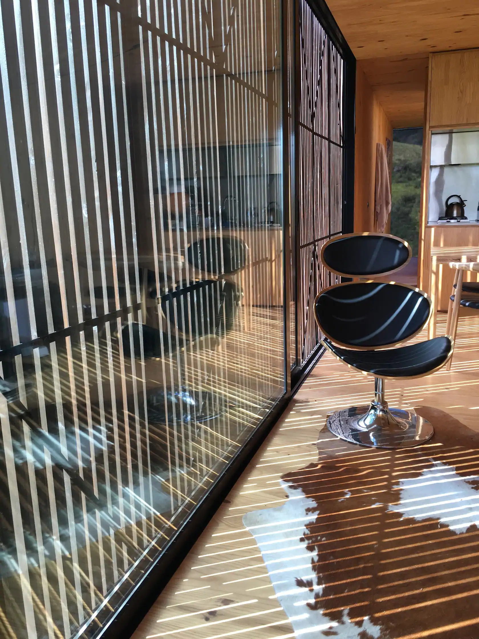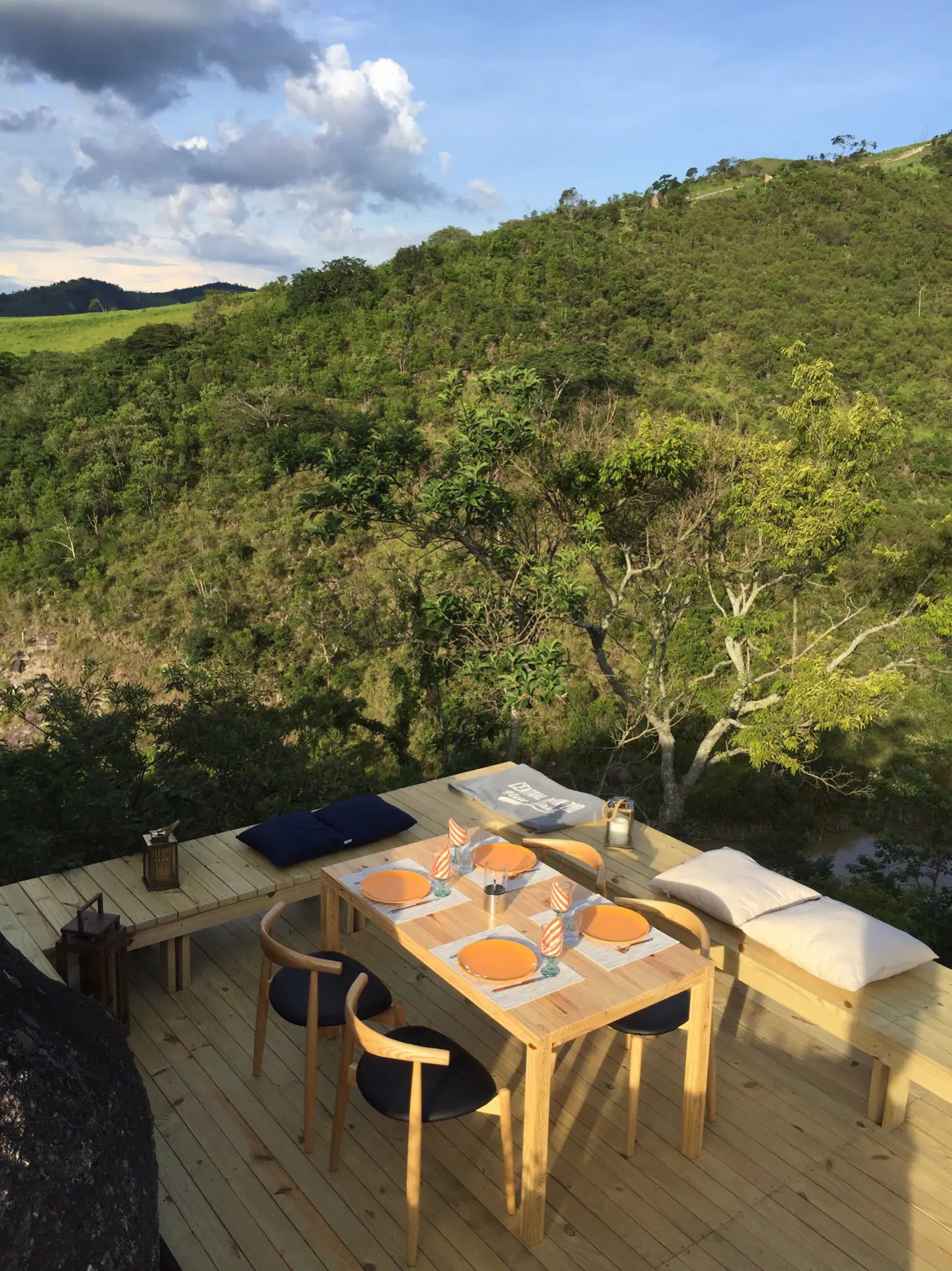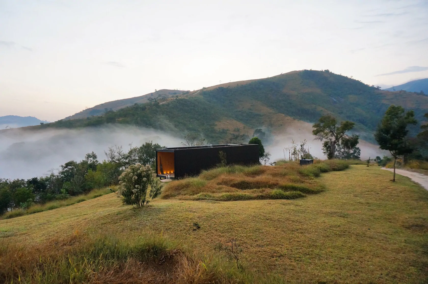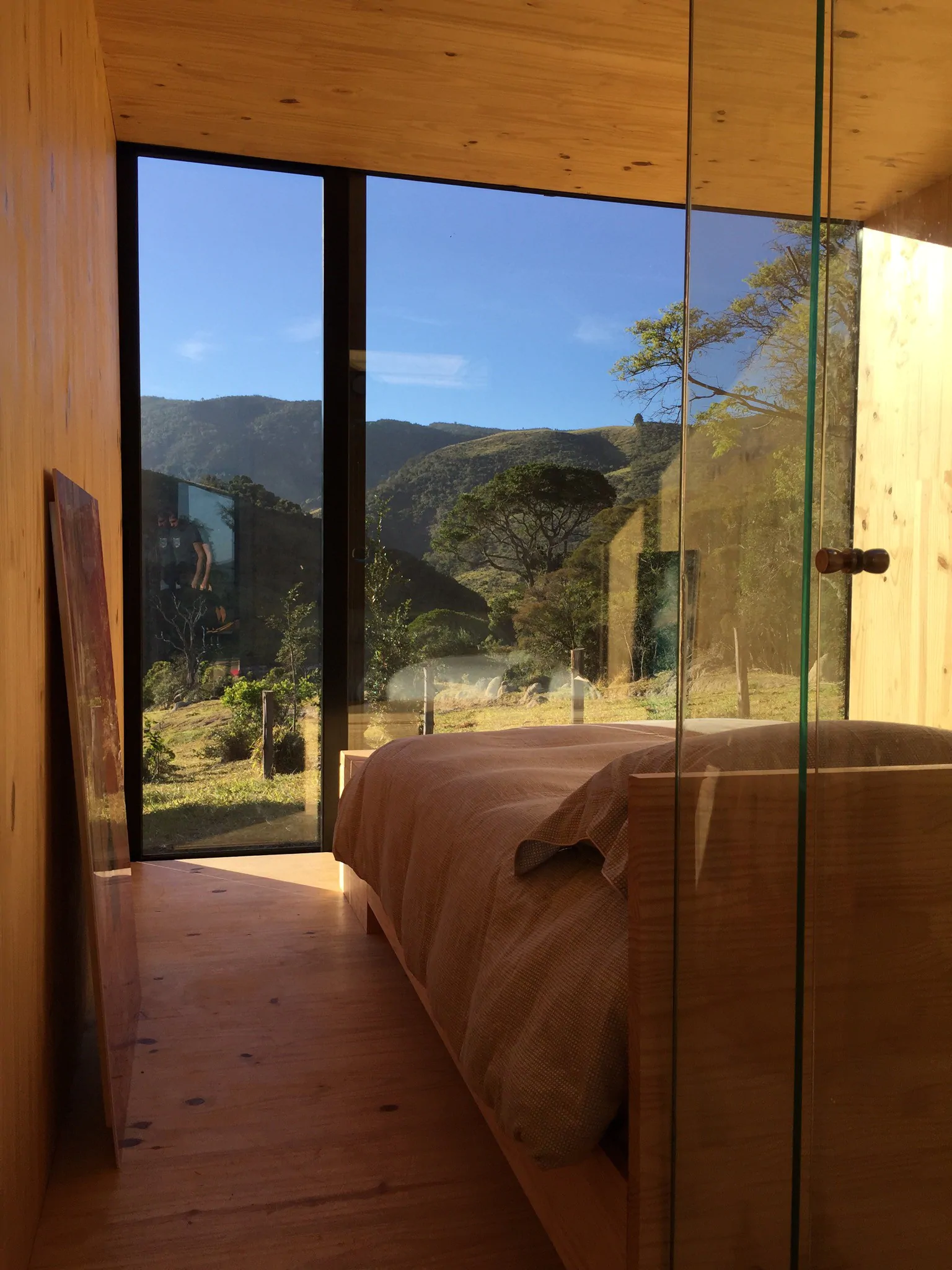 MINIMOD como é chamada essa construção, é um tipo de cabana ecológica. Não tem sinal de telefone, o local é totalmente isolado e remoto. A energia é solar.