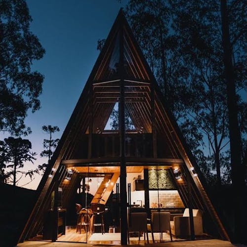 Com design moderno e o já conhecido formato "A Frame" entre as cabins pelo mundo, a Cabana Sunset é a mais nova experiência de hospedagem em cabanas no Brasil.