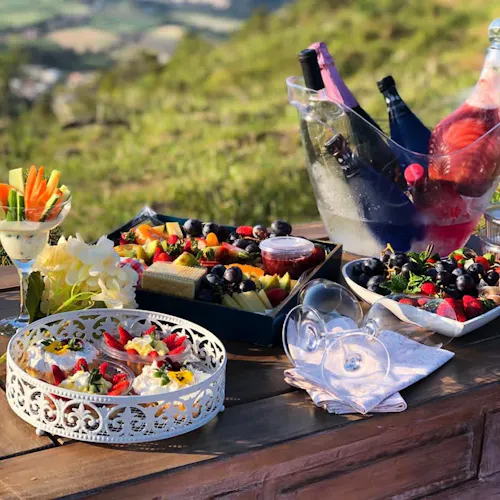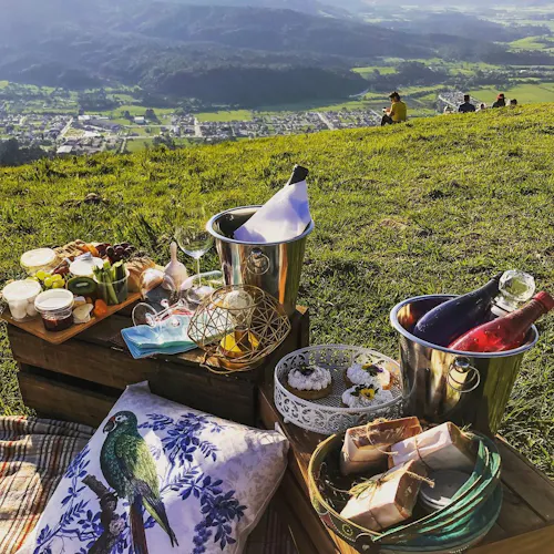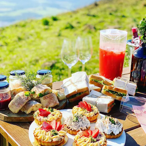 Os picnics acontecem em decks de madeira na beirada das montanhas, na própria grama, ou se chover, há a opção em um ambiente com cobertura porém com a vista permanente! Os clientes do picnic nunca perdem a visão panorâmica, afinal ela faz parte do momento!