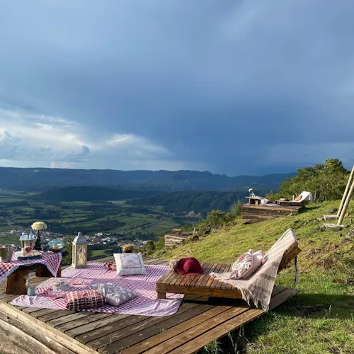 Realizado em uma área restrita do parque Morro do Parapente, que fica localizado no centro da cidade de Urubici na Serra Catarinense, o picnic é feito de forma artesanal, portanto cada um é personalizado e preparado pensando em todas as necessidades e desejos de seus anfitriões! Tudo é escolhido previamente, você pode optar por um pacote a dois, com a família, com os amigos e porque não até em sua própria companhia e ninguém mais né?