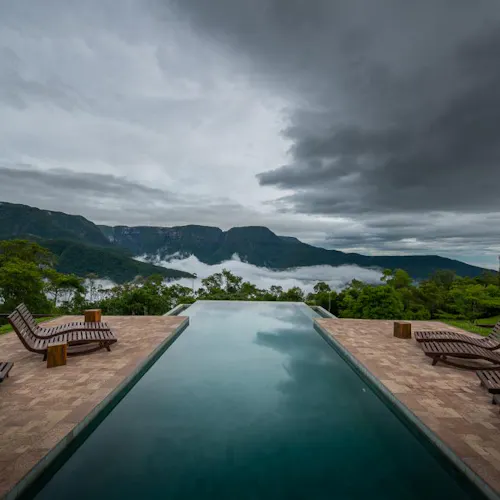 - Piscina aberta infinita e coberta com vista