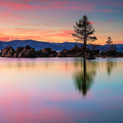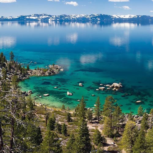 O Lago Tahoe é um grande lago azul com nuances esverdeadas que mudam conforme o horário e localização, cercado por enormes picos de granito da Sierra Nevada, com céu refletindo no maior lago alpino da América do Norte. Lake Tahoe se estende por dois estados, Califórnia e Nevada. Lugar perfeito para quem busca hospedagens de primeira e uma viagem romântica ou com a família. Comunidades únicas e belas pontuam as margens do lado norte e as encostas das montanhas, cada uma oferecendo opções gastronômicas requintadas, casuais e de lazer. Lake Tahoe oferece centenas de quilômetros de trilhas para caminhadas e ciclismo e dezenas de belíssimas praias. Muitos eventos acontecem e são da região de Lake Tahoe, reconhecidos nacionalmente, incluindo festivais de música, concertos, combinações de comida e eventos esportivos que acontecem a cada temporada.