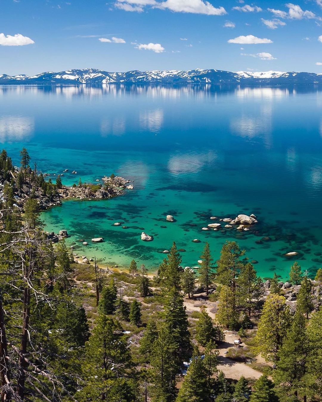 O Lago Tahoe é um grande lago azul com nuances esverdeadas que mudam conforme o horário e localização, cercado por enormes picos de granito da Sierra Nevada, com céu refletindo no maior lago alpino da América do Norte. Lake Tahoe se estende por dois estados, Califórnia e Nevada. Lugar perfeito para quem busca hospedagens de primeira e uma viagem romântica ou com a família. Comunidades únicas e belas pontuam as margens do lado norte e as encostas das montanhas, cada uma oferecendo opções gastronômicas requintadas, casuais e de lazer. Lake Tahoe oferece centenas de quilômetros de trilhas para caminhadas e ciclismo e dezenas de belíssimas praias. Muitos eventos acontecem e são da região de Lake Tahoe, reconhecidos nacionalmente, incluindo festivais de música, concertos, combinações de comida e eventos esportivos que acontecem a cada temporada.