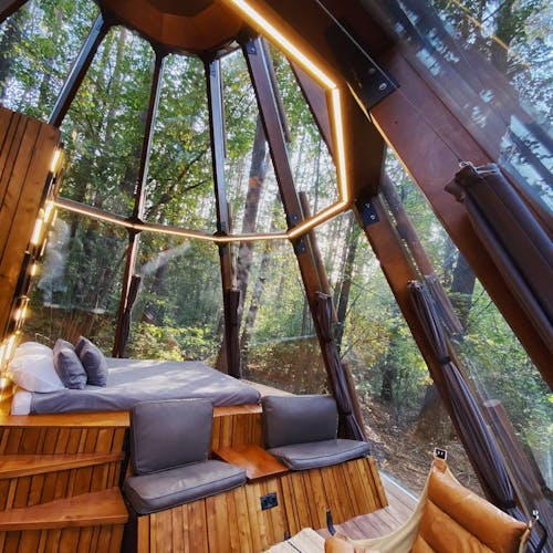 Inaugurado em maio de 2021, o local é se não a única, uma das poucas no mundo no estilo tenda com paredes envidraçadas do chão ao teto. A acomodação tem a proposta de se hospedar em um glamping com todo conforto e comodidade de hotel e ao mesmo tempo a aventura que esse estilo de lugar proporciona.