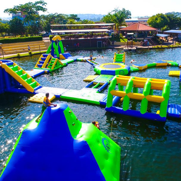 O parque aquático de flutuantes sobre as águas está tomando o mundo pela diversão e atraindo gente de todas as idades.