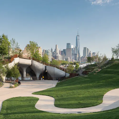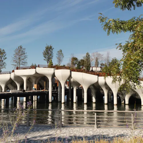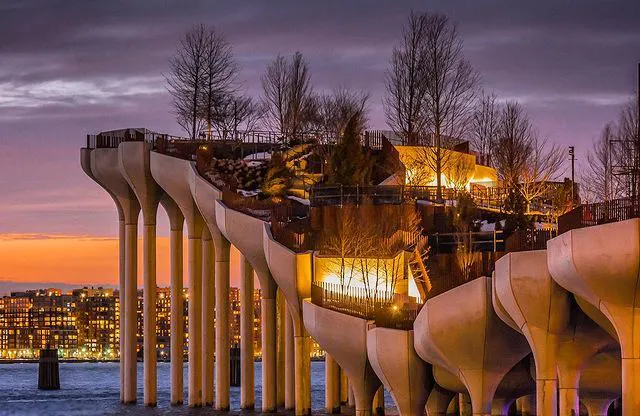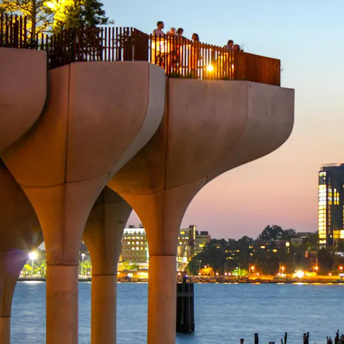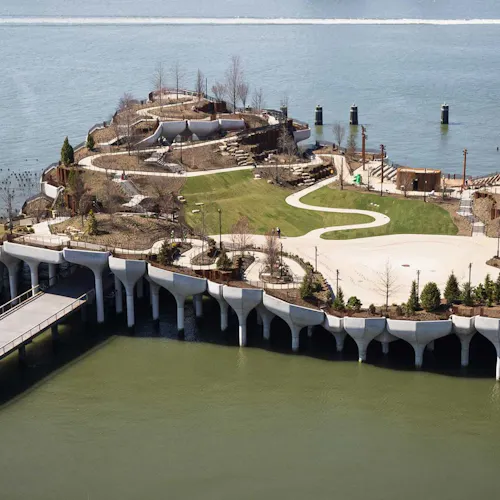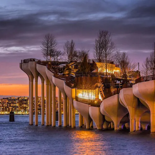 Little Island foi inaugurado em 21 de maio de 2021 e fica em um local que desempenhou um papel fundamental na história do Rio Hudson e nas comunidades vizinhas, e demonstra mais uma evolução dinâmica da orla marítima de Nova York.