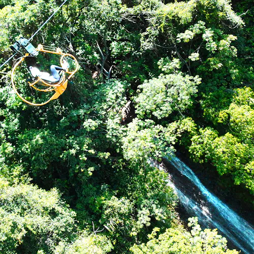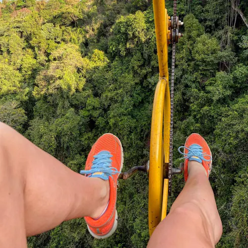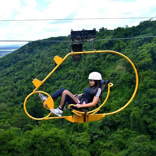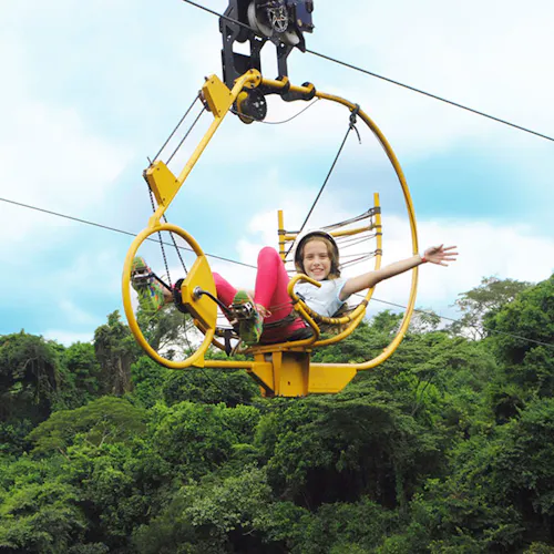 Projetada por engenheiros, a Superbike fica ancorada com segurança por cabos de aço em plataformas na mata. Quem embarcar na aventura será equipado com cadeirinha especial e preso à Superbike, para então dar início ao passeio. Durante o percurso de aproximadamente 300 metros e contemplando a paisagem, não é necessário ter pressa: cada um pedala no seu ritmo.