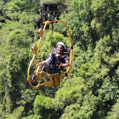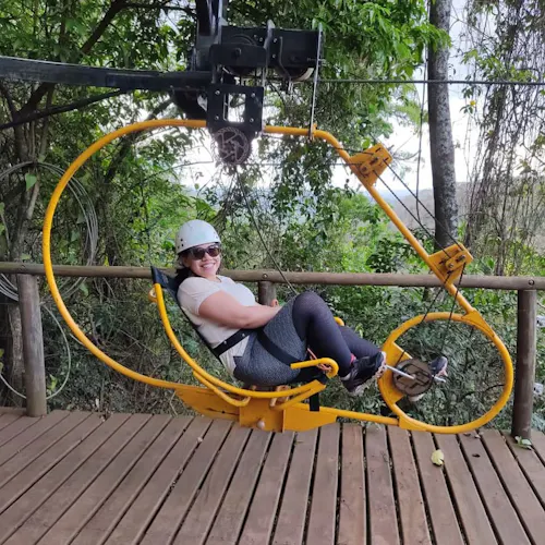 Inédito por aqui, a Superbike ou Skybike como também é conhecida, é uma atração cheia de adrenalina onde é possível fazer um vôo panorâmico pedalando uma bicicleta como se estivesse em uma tirolesa. Tudo a 70 metros de altura, de onde é possível ver a vegetação do parque e a Cachoeira Santa Eulália que passa logo abaixo.