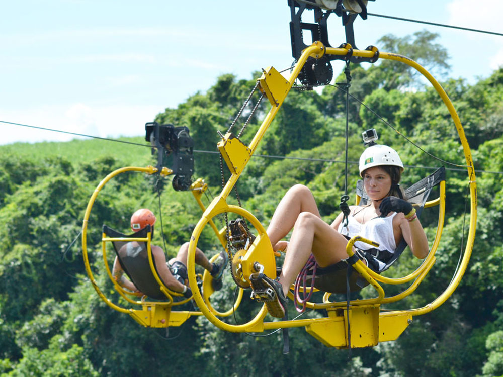 Projetada por engenheiros, a Superbike fica ancorada com segurança por cabos de aço em plataformas na mata. Quem embarcar na aventura será equipado com cadeirinha especial e preso à Superbike, para então dar início ao passeio. Durante o percurso de aproximadamente 300 metros e contemplando a paisagem, não é necessário ter pressa: cada um pedala no seu ritmo.