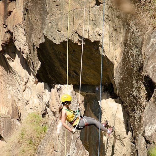 Se em último caso quando chegar lá, você achar que a altura é demais pra você, ainda dá tempo de optar pelo rapel de 40m ou 70m, mas esses a gente nem vai incluir muito aqui porque a gente quer mesmo te desafiar!