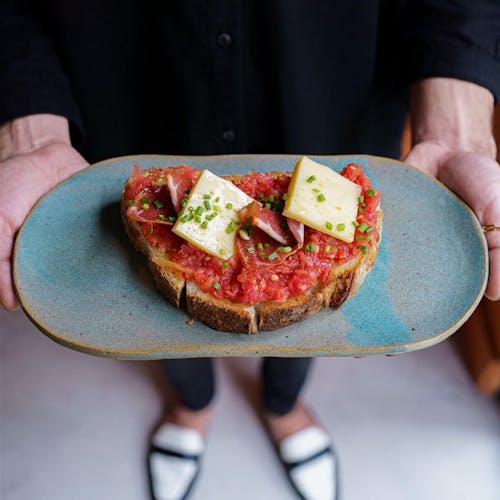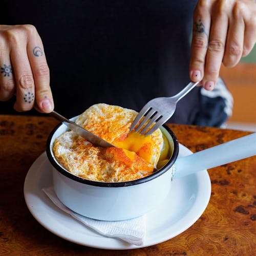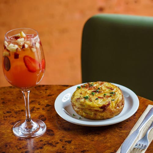 - TORTILLA ESPAÑOLA: O prato vegetariano é uma omelete espanhola com batata e ovos