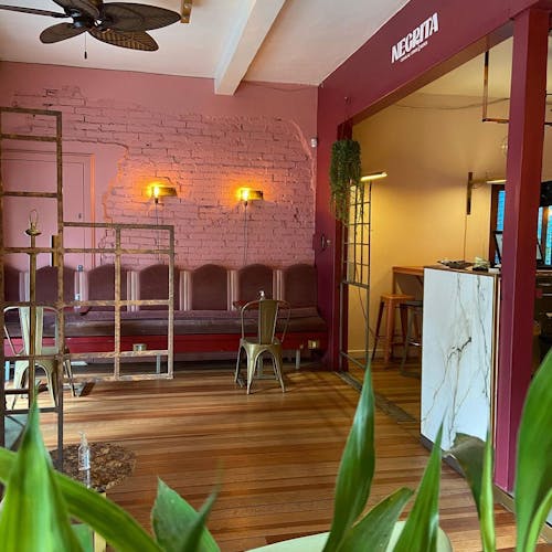 O bar do Negrita, é um destaque à parte quando se entra no oásis. É nele que são feitos os cafés, sucos e coquetéis que animam a casa. O cardápio está em constante mudança, acompanhando as estações e oferece desde um simples café e acompanhamentos até brunch o dia todo.