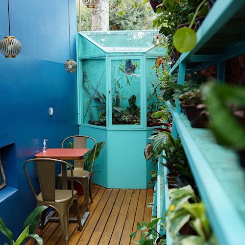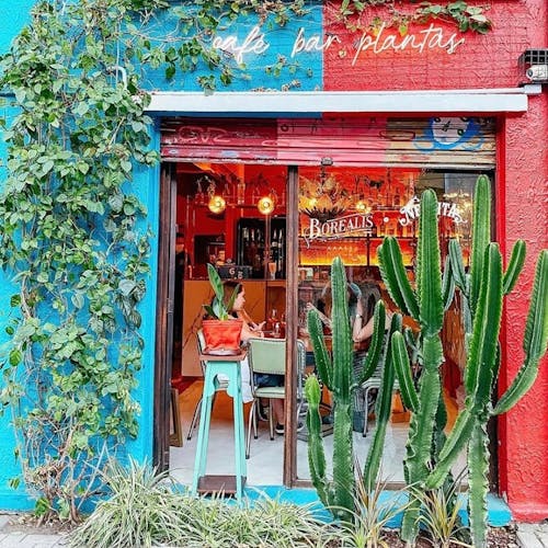 Botanique Oásis é uma parceria entre o Negrita Bar e a Borealis & Australis Plantas que se juntaram para compartilhar uma casinha caprichosa e colorida.