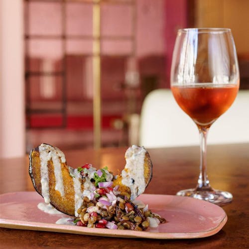 - Arroz cremoso de banana da terra e castanha de caju com pimentões, gengibre, azeite de dendê, pimenta dedo de moça, leite de coco e coentro finalizado com couve crocante