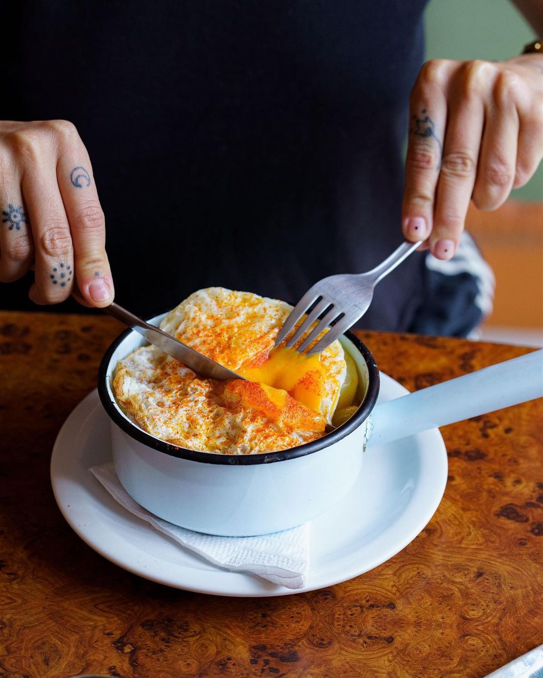 - TORTILLA ESPAÑOLA: O prato vegetariano é uma omelete espanhola com batata e ovos