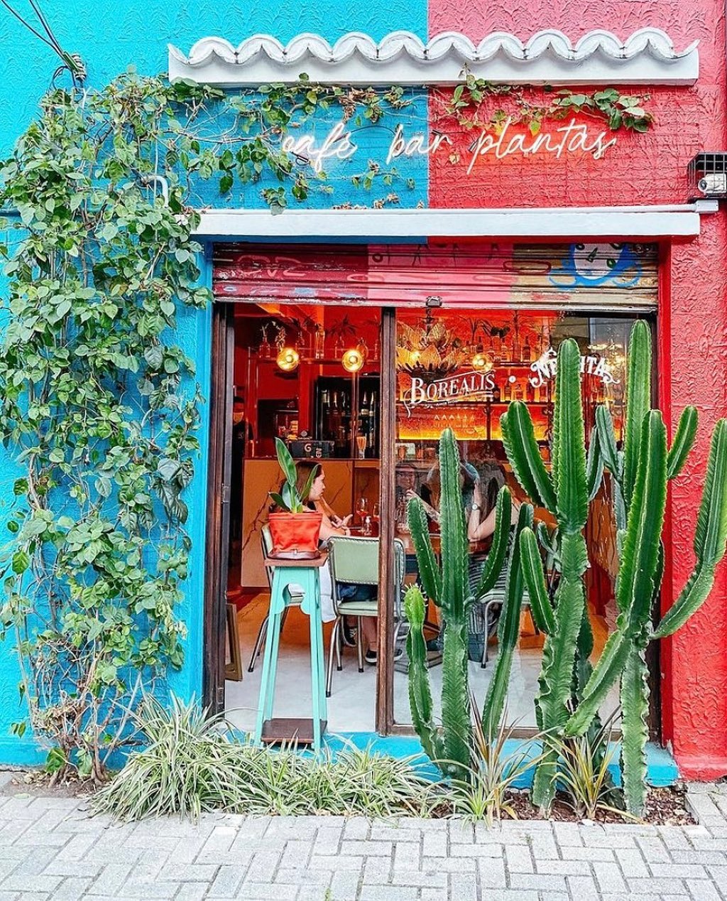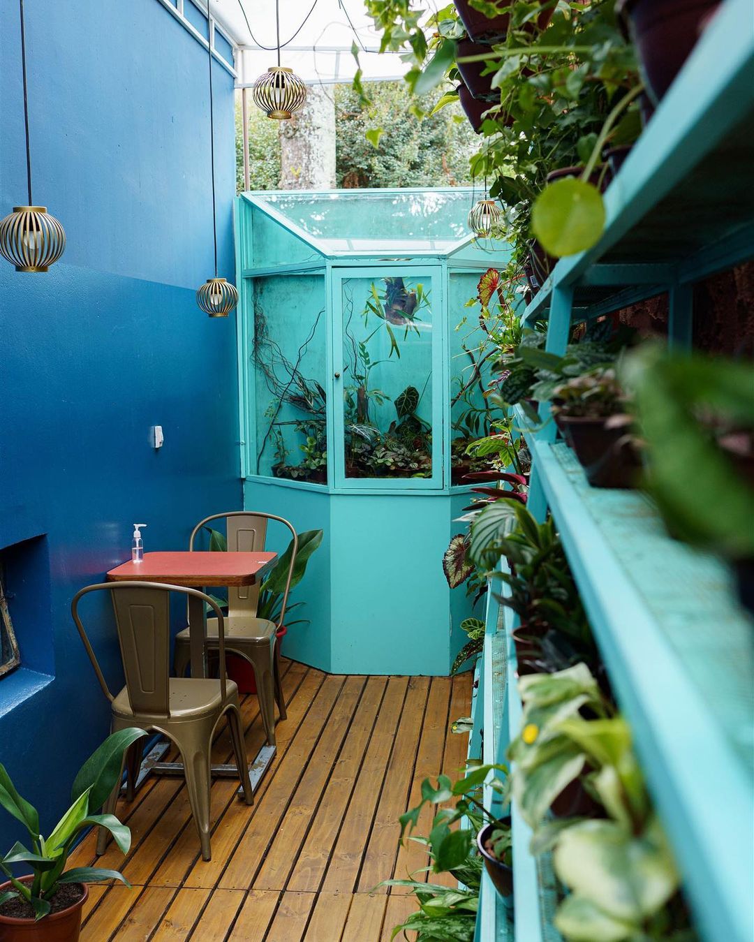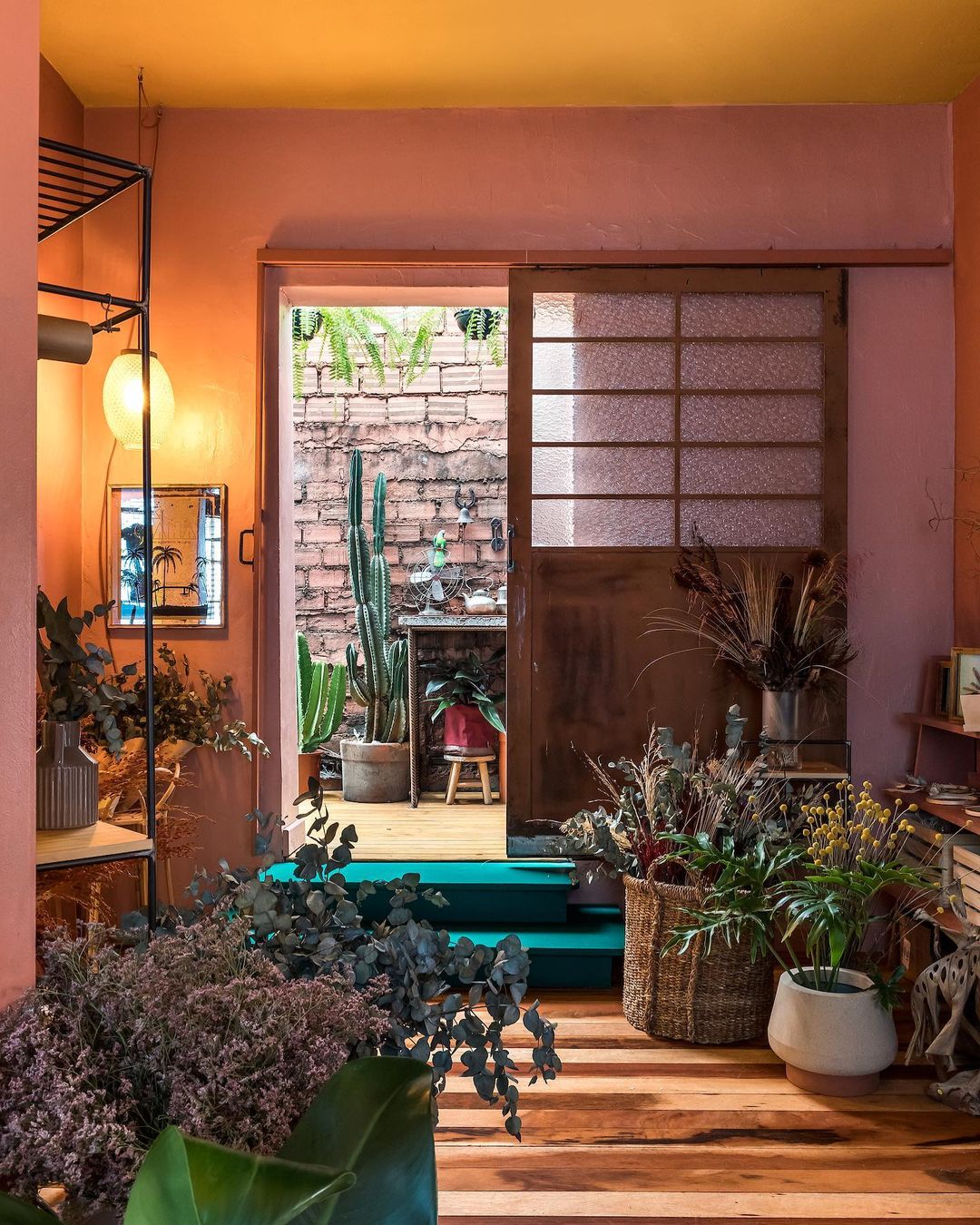 Uma fusão de cafeteria, bar e loja de plantas no mesmo lugar - tudo isso unido a design e uma decoração muito charmosa.