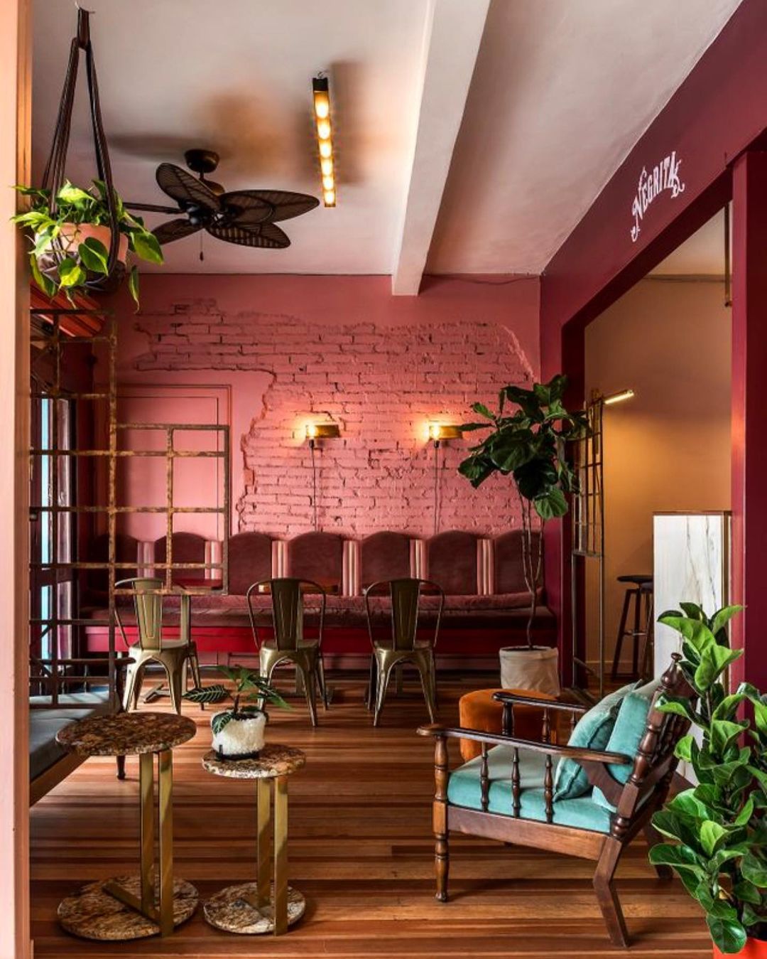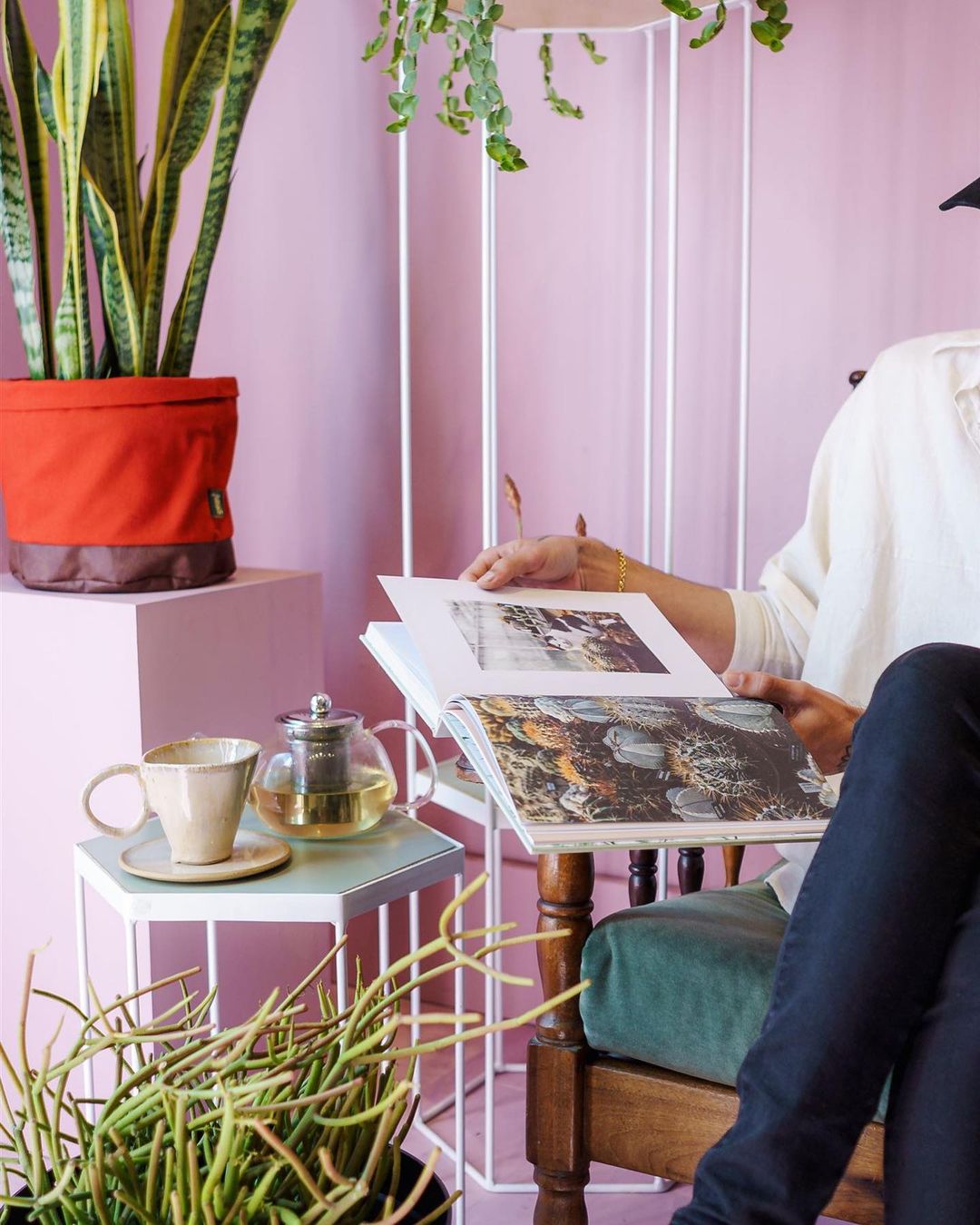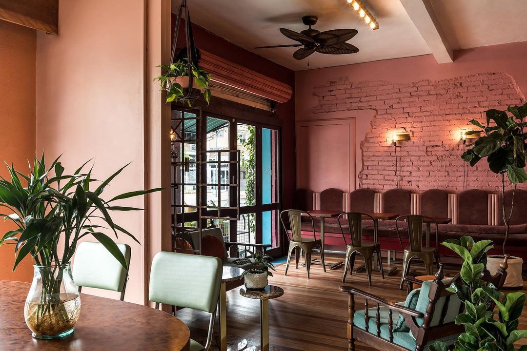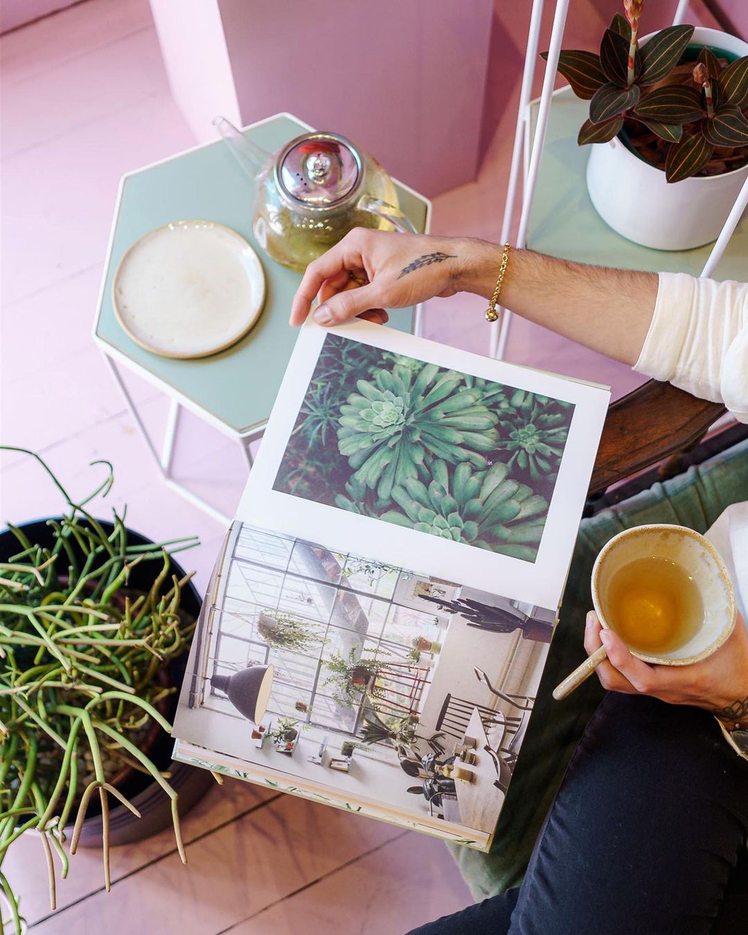 Uma fusão de cafeteria, bar e loja de plantas no mesmo lugar - tudo isso unido a design e uma decoração muito charmosa.