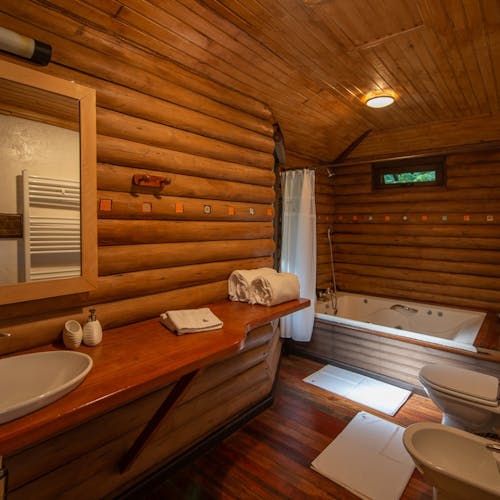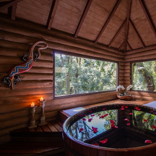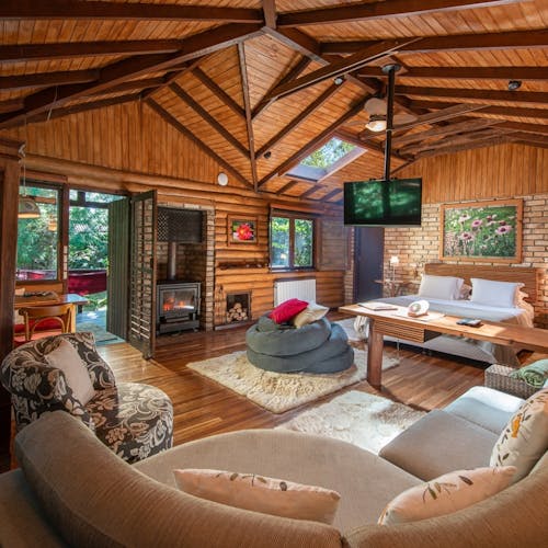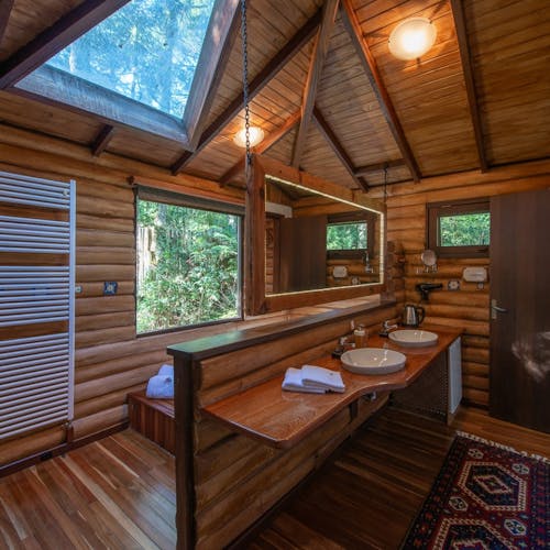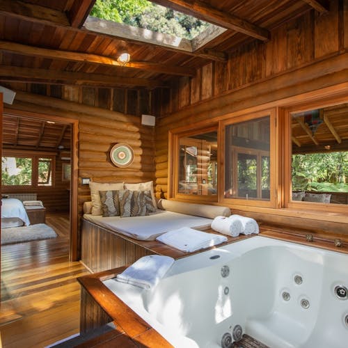 As cabanas ficam realmente imersas na natureza e embora esteja localizada no meio de uma floresta, a pousada tem um perfil super conectado e está ligada em tecnologias que são usadas para dar um upgrade ainda maior na estadia, principalmente no caso da suíte master - a cabana 15, onde tudo dentro dela é interligado com gadgets funcionais - por exemplo a iluminação, a mesa, a banheira, as cortinas - tudo pode ser modificado por meio de um tablet.