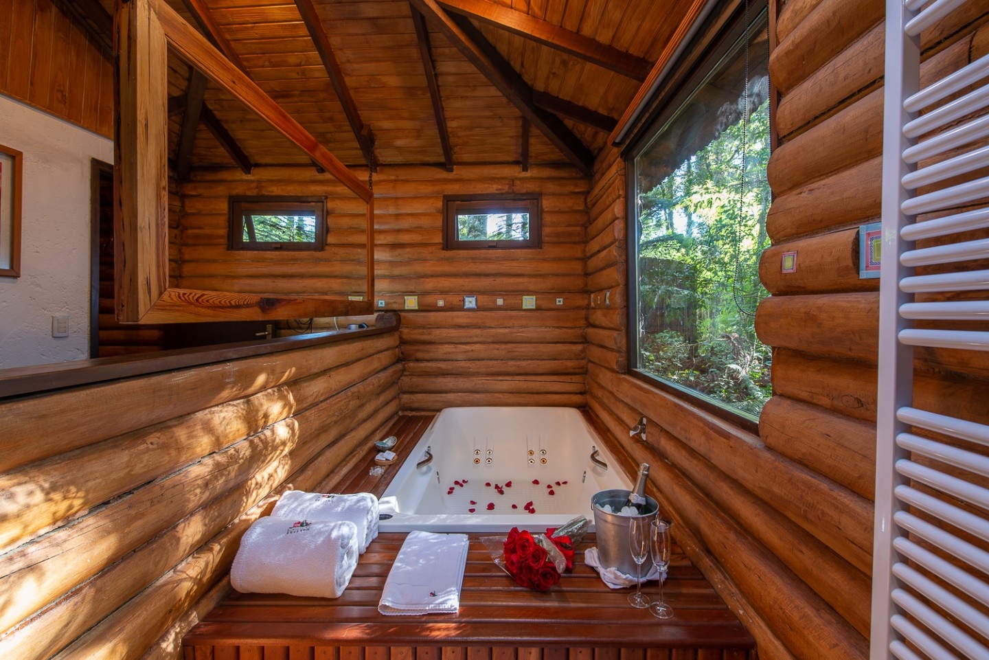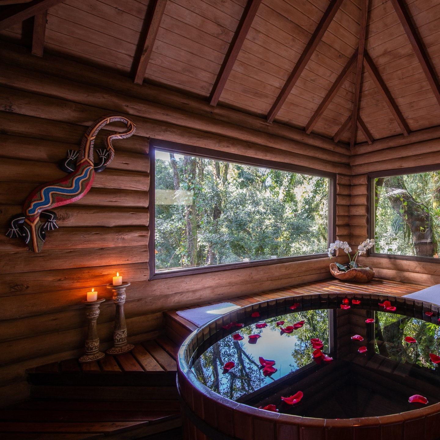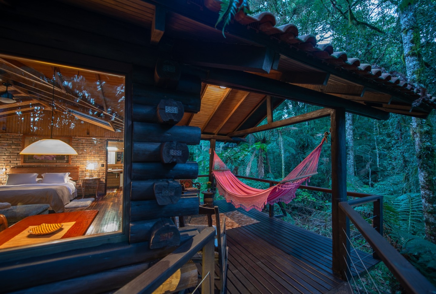 As cabanas ficam realmente imersas na natureza e embora esteja localizada no meio de uma floresta, a pousada tem um perfil super conectado e está ligada em tecnologias que são usadas para dar um upgrade ainda maior na estadia, principalmente no caso da suíte master - a cabana 15, onde tudo dentro dela é interligado com gadgets funcionais - por exemplo a iluminação, a mesa, a banheira, as cortinas - tudo pode ser modificado por meio de um tablet.