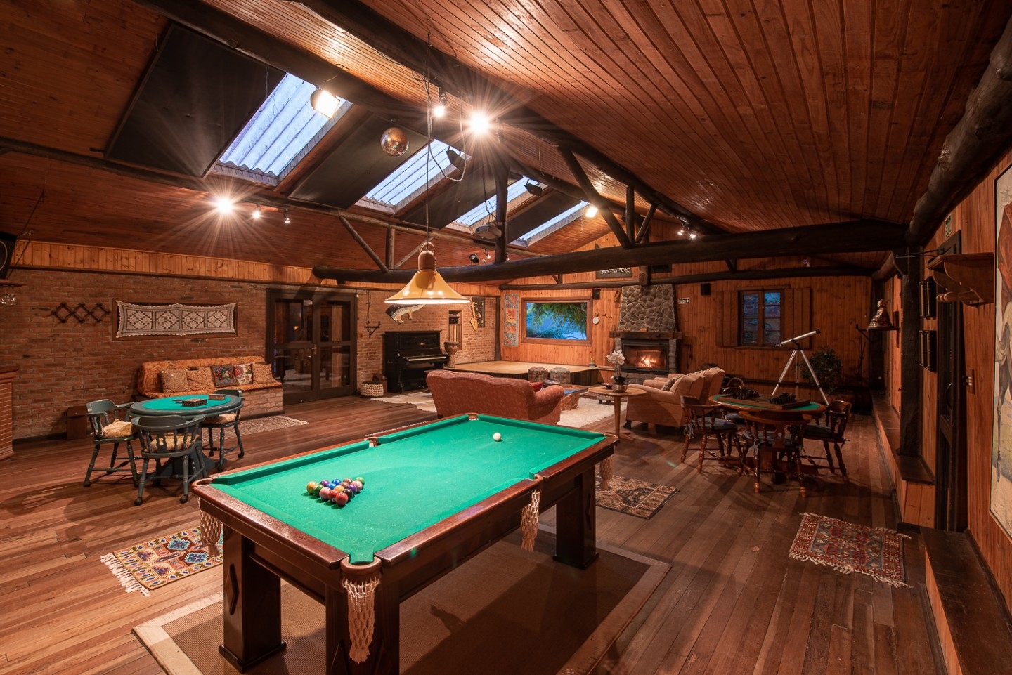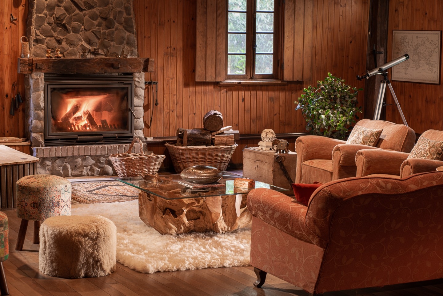 Em geral nas construções das cabanas, predominam o uso de pedras, madeiras, troncos (algumas são construídas no estilo "log house" - quando os troncos ficam um acima do outro), luz natural em aberturas pontuais no teto e tijolinhos.