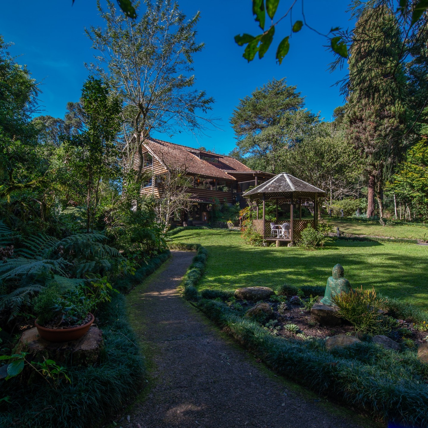 Os cuidados com o lugar vão desde a criteriosa implantação das construções – cirurgicamente implantadas na mata – até o tratamento dos efluentes, único na região. Nas suítes os itens de uso para banho são naturais e na medida do possível o máximo de itens orgânicos são utilizados de modo geral.