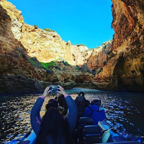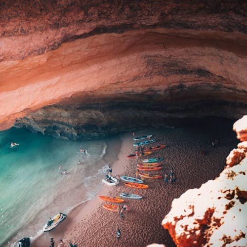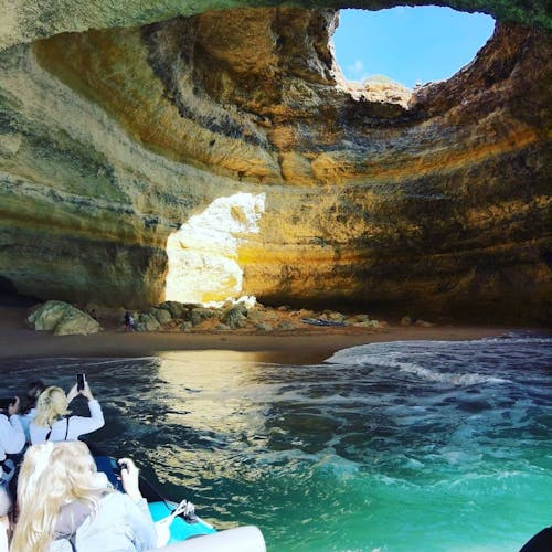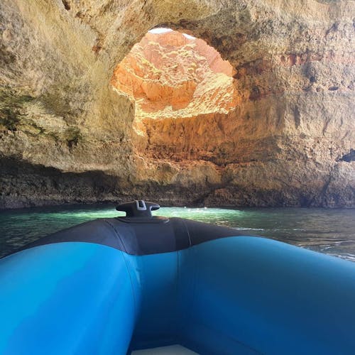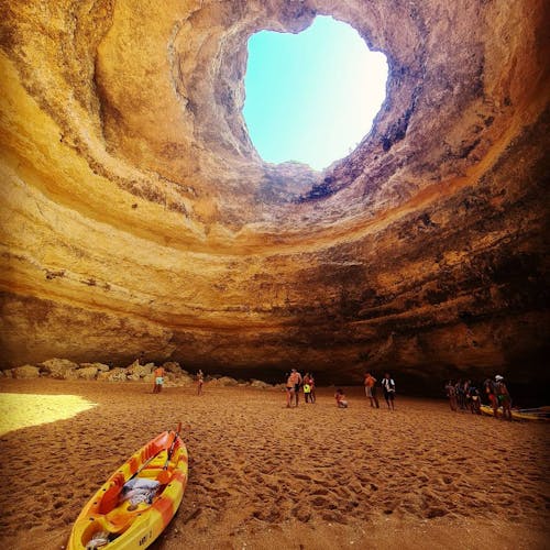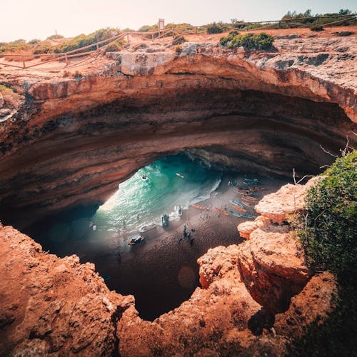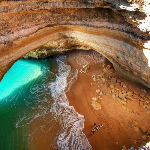 Já para entrar na gruta, é possível contratar o passeio de barco ou alugar o caiaque nas agências de viagem que ficam perto da própria praia e é possível conhecer outros locais além da Gruta de Benagil. Já se você for mais radical e tiver fôlego para ir nadando, fique atento: diversas pessoas são resgatadas durante a tentativa pois o mar ali é muito gelado e com movimentação intensa.