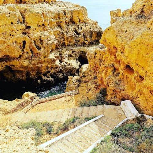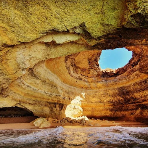 A Gruta de Benagil, ou Algar de Benagil, é uma gruta natural consequência de anos de erupção do mar em rochas de arenito, que são em sua maioria a composição da costa da região. As pedras amarelas foram se modificando ao longo dos anos, mudando a paisagem natural e permitindo a reinvenção desses lugares deslumbrantes.