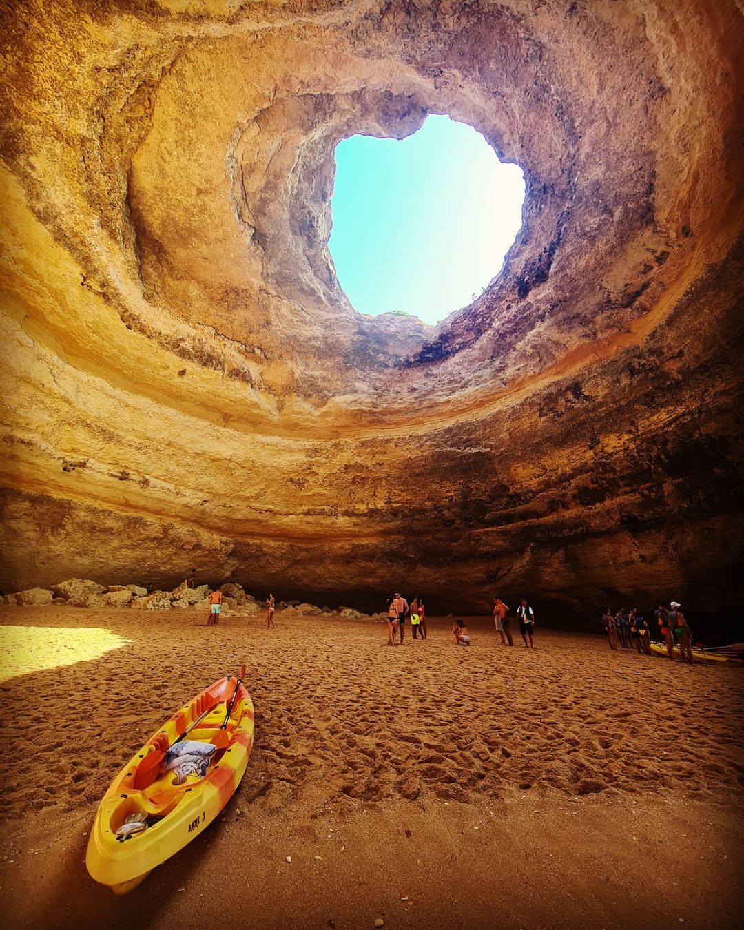 A Gruta de Benagil, ou Algar de Benagil, é uma gruta natural consequência de anos de erupção do mar em rochas de arenito, que são em sua maioria a composição da costa da região. As pedras amarelas foram se modificando ao longo dos anos, mudando a paisagem natural e permitindo a reinvenção desses lugares deslumbrantes.