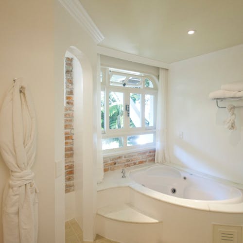 Localizada próximo ao Lounge do bar, a Grand Suíte 9 tem 38,48m². Diferencial dessa acomodação: uma banheira com hidromassagem fora da suíte, em uma varanda com Recamier e vista para jardim. Essa suíte possui menor conforto acústico devido a proximidade com a área do Bistrô.