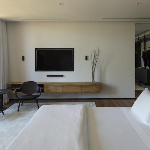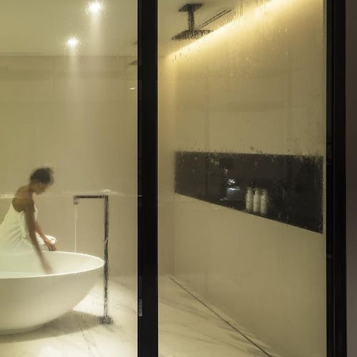 Todas as suítes possuem roupa de cama Trussardi personalizada 400 fios, som Bose bluetooth, Apple tv, iPod com trilha sonora selecionada, linha sustentável de amenities vegan friendly, varanda e banheira.