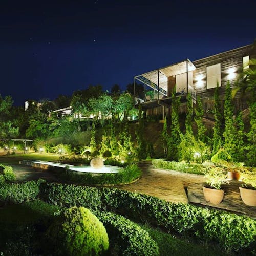 Todas rodeadas pelo jardim do hotel em um oásis de cinco mil metros quadrados localizado estrategicamente numa colina, entre a cosmopolita Balneário Camboriú e a cidade de Itajaí.