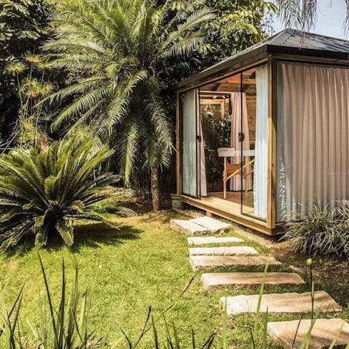 A visão inovadora de hotelaria do futuro numa casa que une sustentabilidade, alta tecnologia e máximo conforto para quem ama viajar. Uma casa com consumo inteligente e elementos de impacto reduzido que proporcionam uma experiência singular aos hóspedes do hotel. Totalmente completa, com tecnologia e conforto distribuídos em 120m², incluindo varanda com ofurô e sala de banho com 2 chuveiros + banheira.